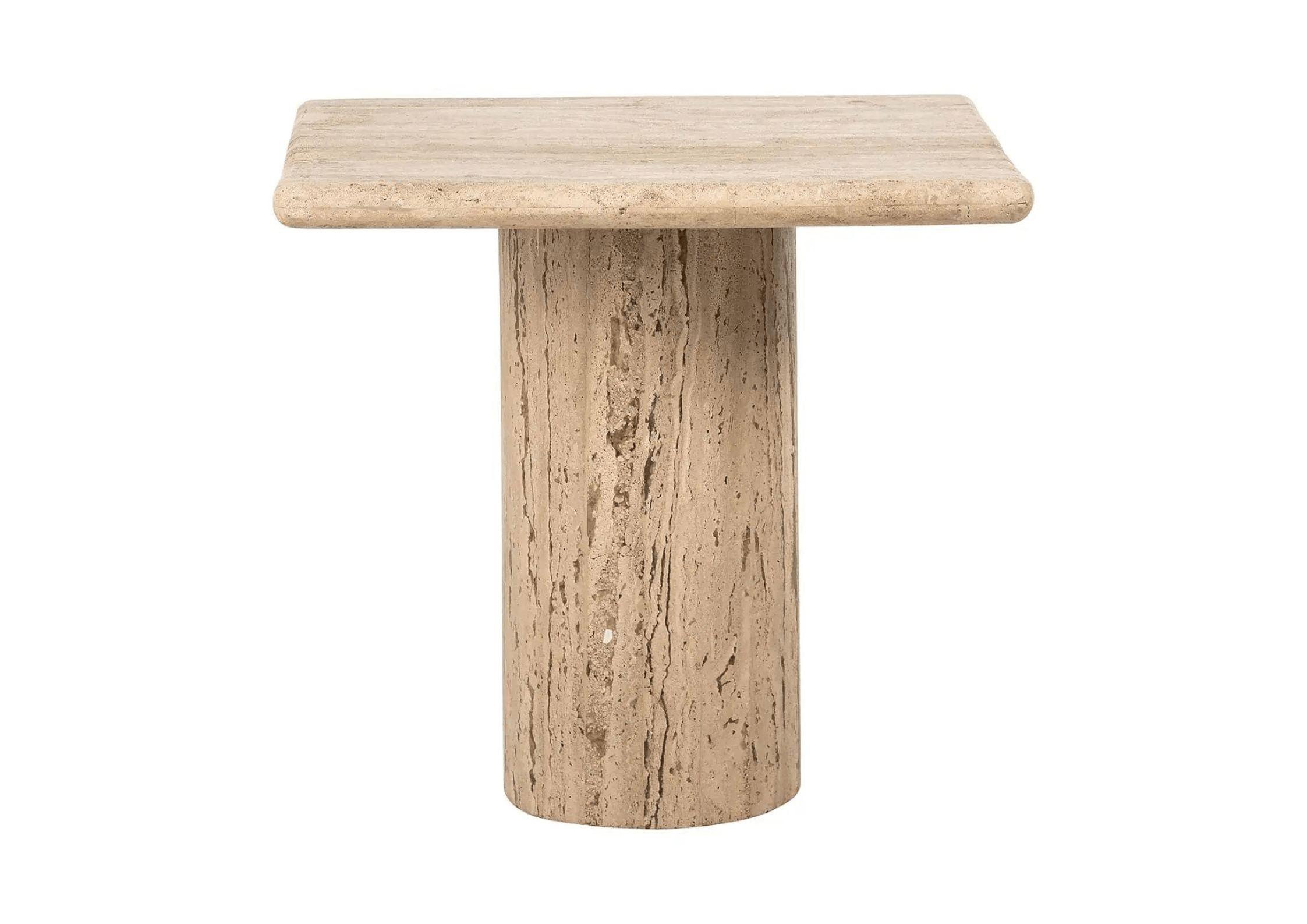 Side table Hampton made of beautiful beige travertine is not only an elegant element, but also a solid and durable piece of furniture. His rectangular top placed on two round legs gives it a unique look and sophisticated character.