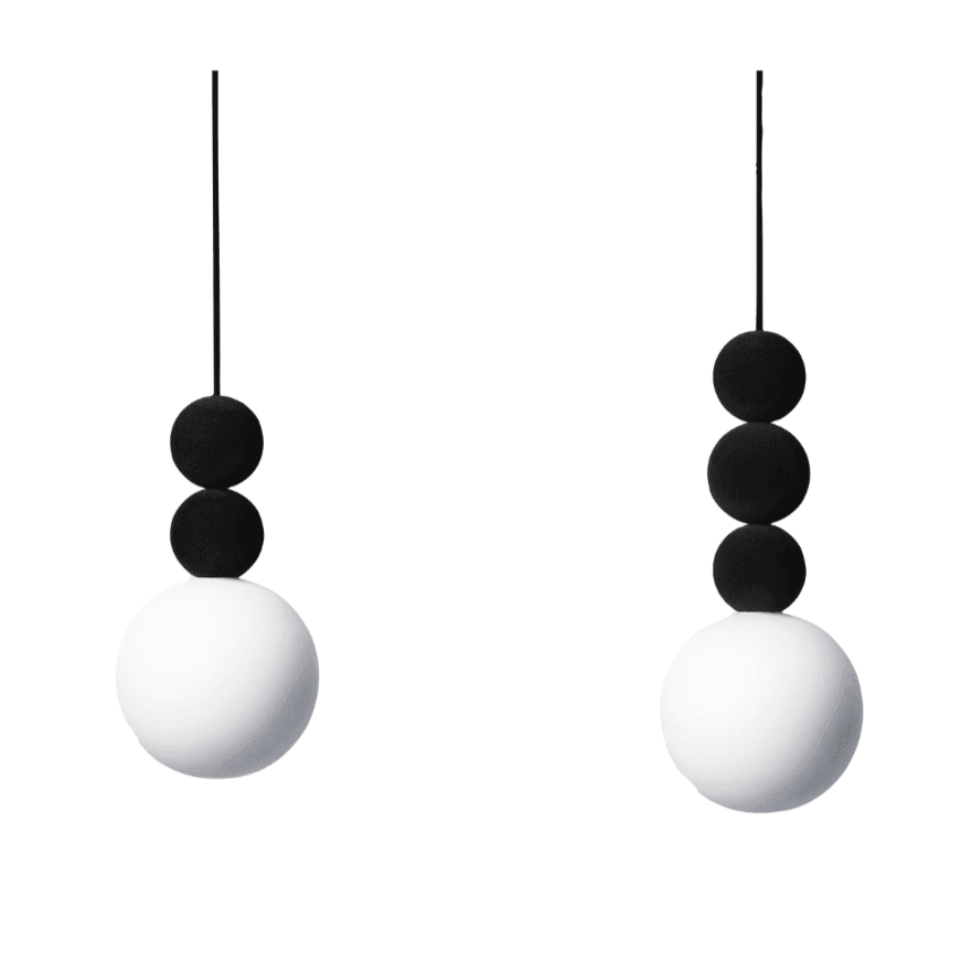 Pain hurts it stylish lamp Hanging, combining a minimalist form with an elegant, suede finish. Decorative balls give the whole an unusual shape that impresses both on both the light turned on and off.