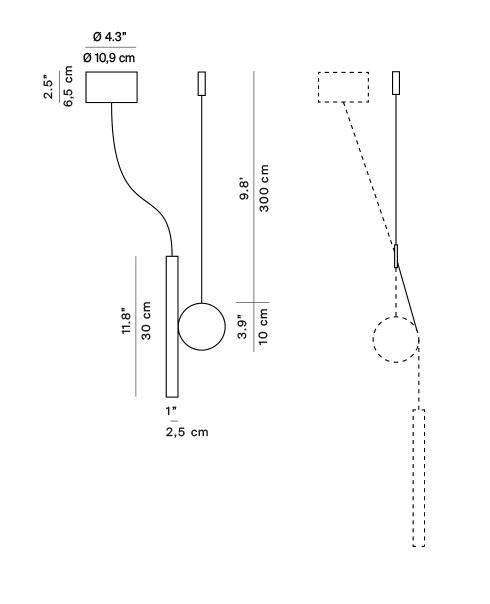 Hanging lamp DOI Luceplan is a modern and decorative lighting fitting that combines a minimalist design with the illusion of movement and balance. It consists of two basic elements: a disk attached to the ceiling and an aluminum cylinder that acts as a reflector, suspended on a thin cable. An additional element may be a counterweight, allowing you to adjust the angle of incidence of light.