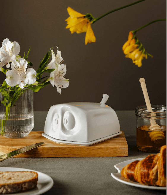 Butter Hidden in white resembles a hidden creature in a cave. This is an unusual and funny dish for storing butter.