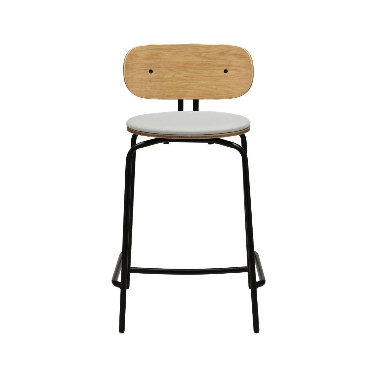 Hoker Curious has been designed for comfort and aesthetics - a simple, metal crossbar acts as a convenient footrest, providing a natural position while sitting and promoting long, free conversations.