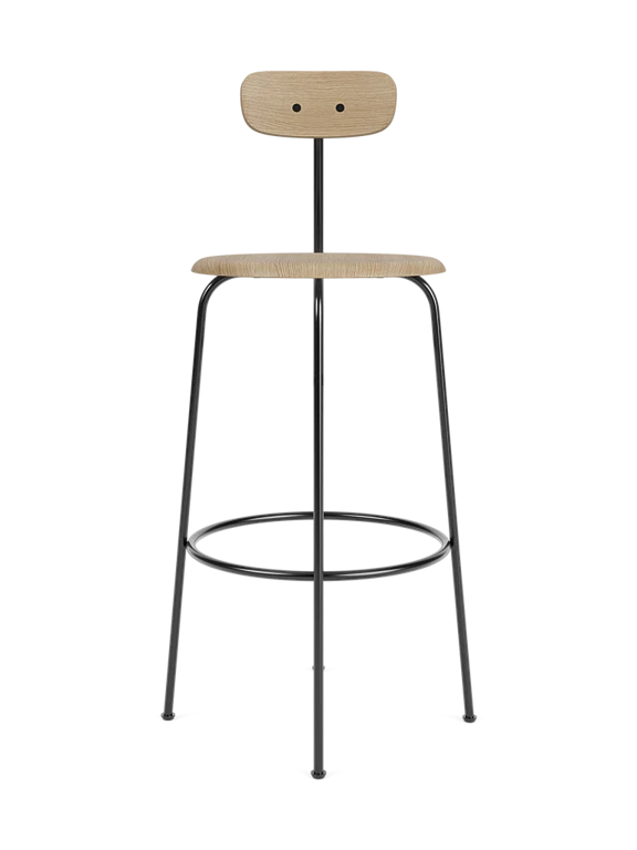 Czteronożna konstrukcja hokera Afteroom zapewnia maksymalne wsparcie przy minimalnym zużyciu materiału, co czyni go doskonałym przykładem zrównoważonego designu. Ergonomiczny kształt oparcia i podnóżek zapewniają wygodę nawet przy dłuższym siedzeniu, łącząc funkcjonalność z ponadczasową estetyką.
