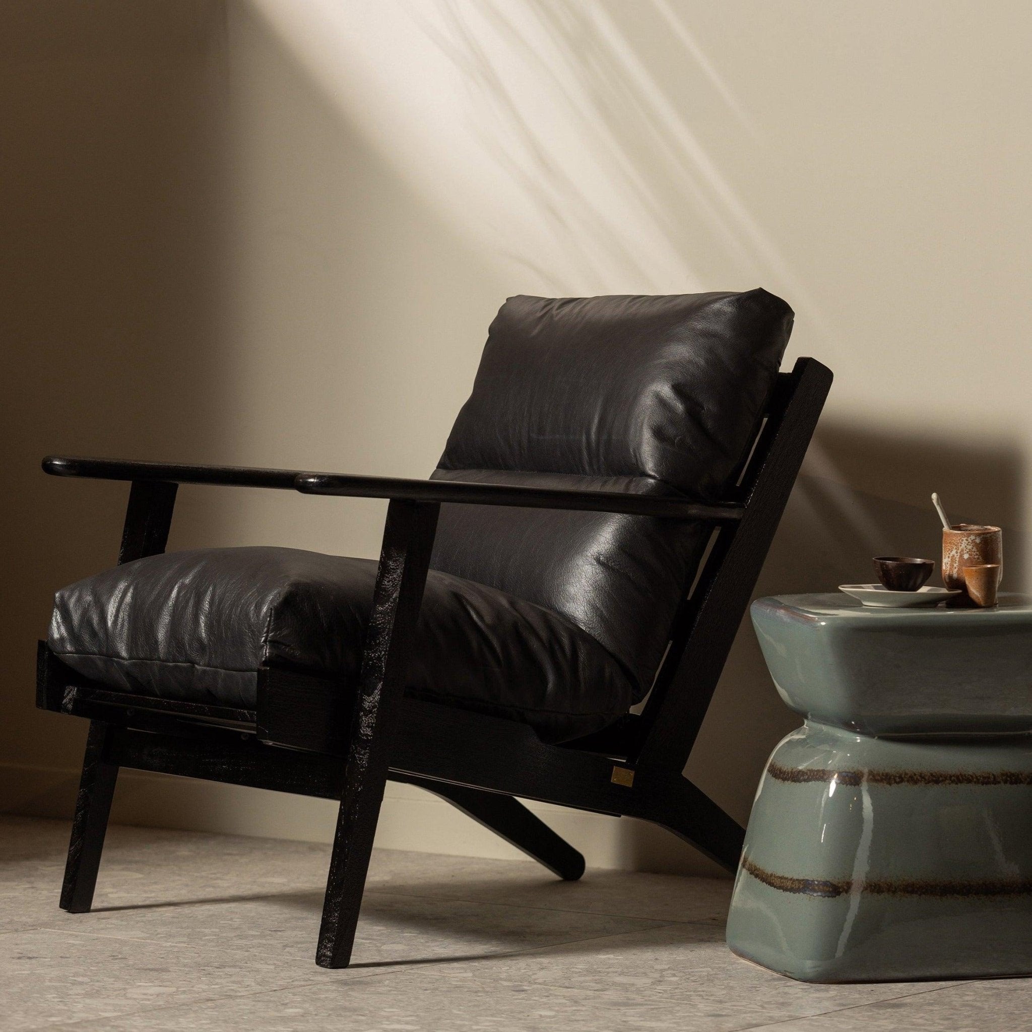 Houston wooden armchair black leather