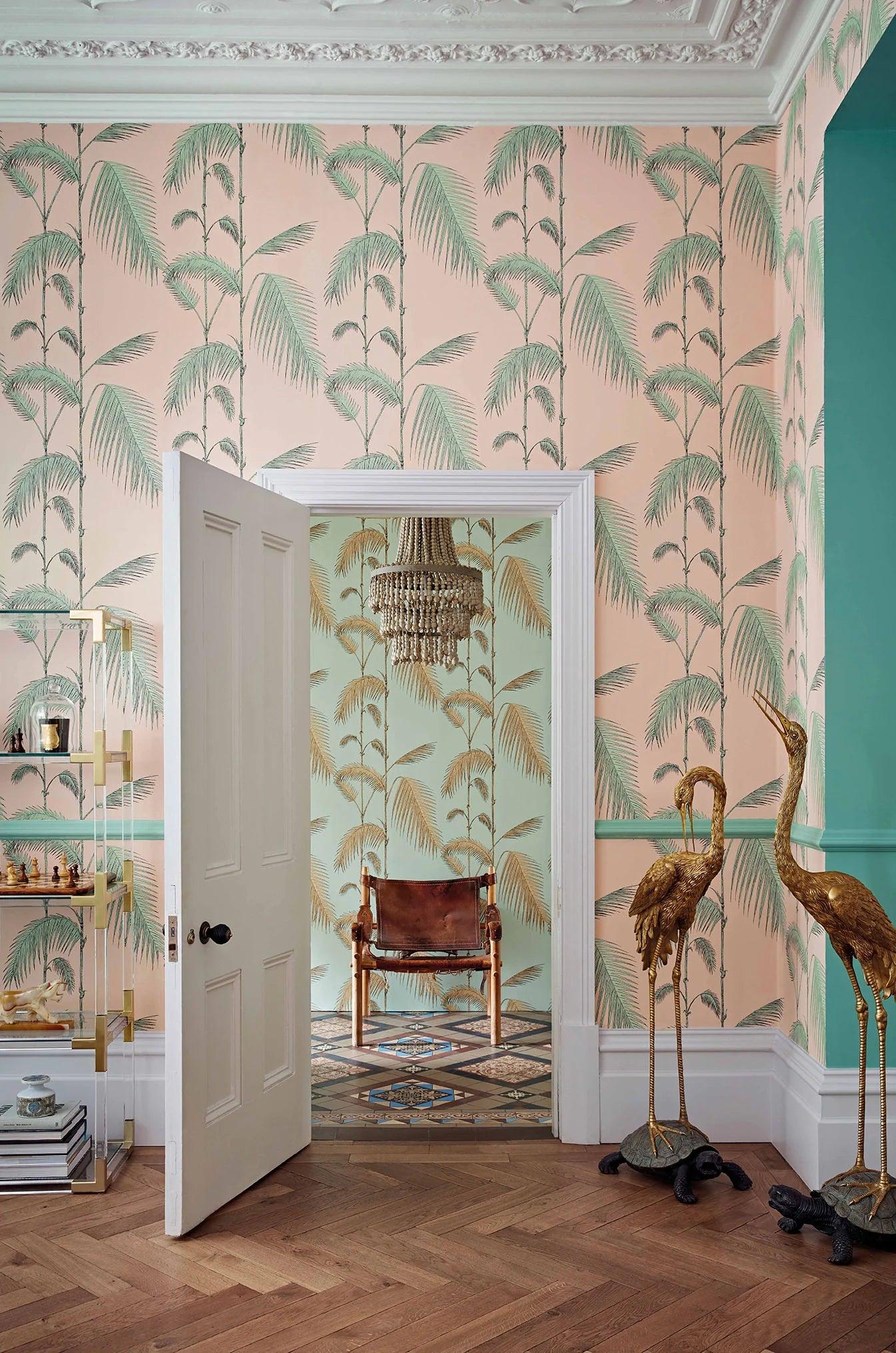 Beautiful and captivating wallpaper Palm Leaves is the beginning to create a unique jungle in your own apartment. Impressive palm leaves were placed on a smooth background perfectly contrasting. The color palette refers to the sun -faded color palette Miami Stench yellow, intense green and gray gray.