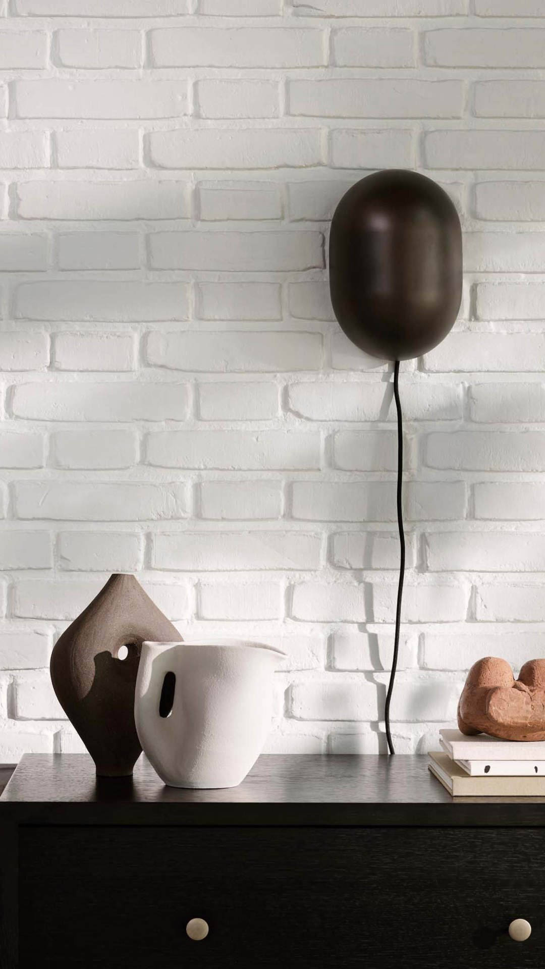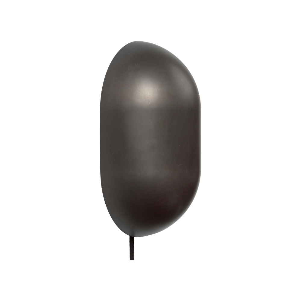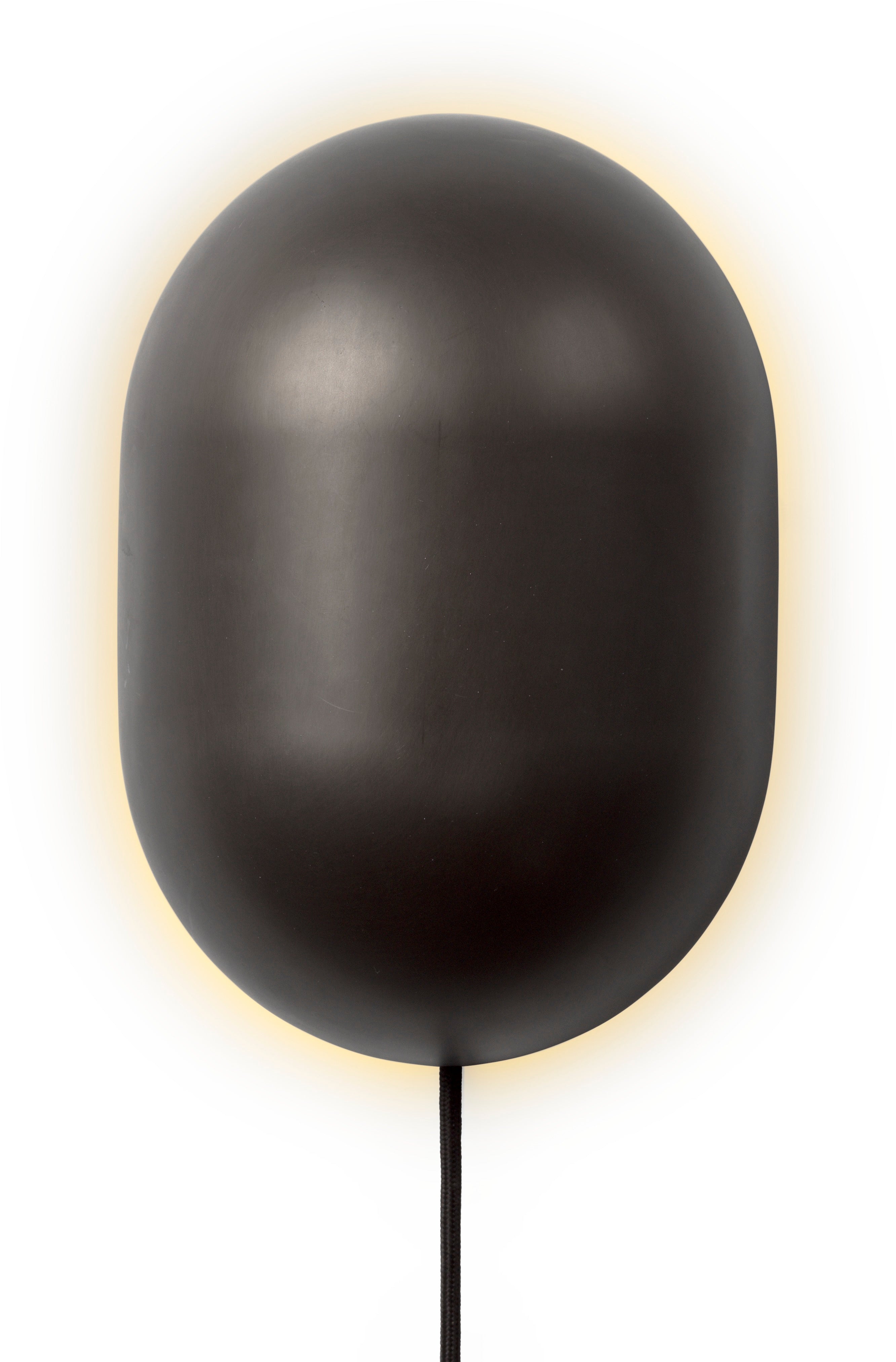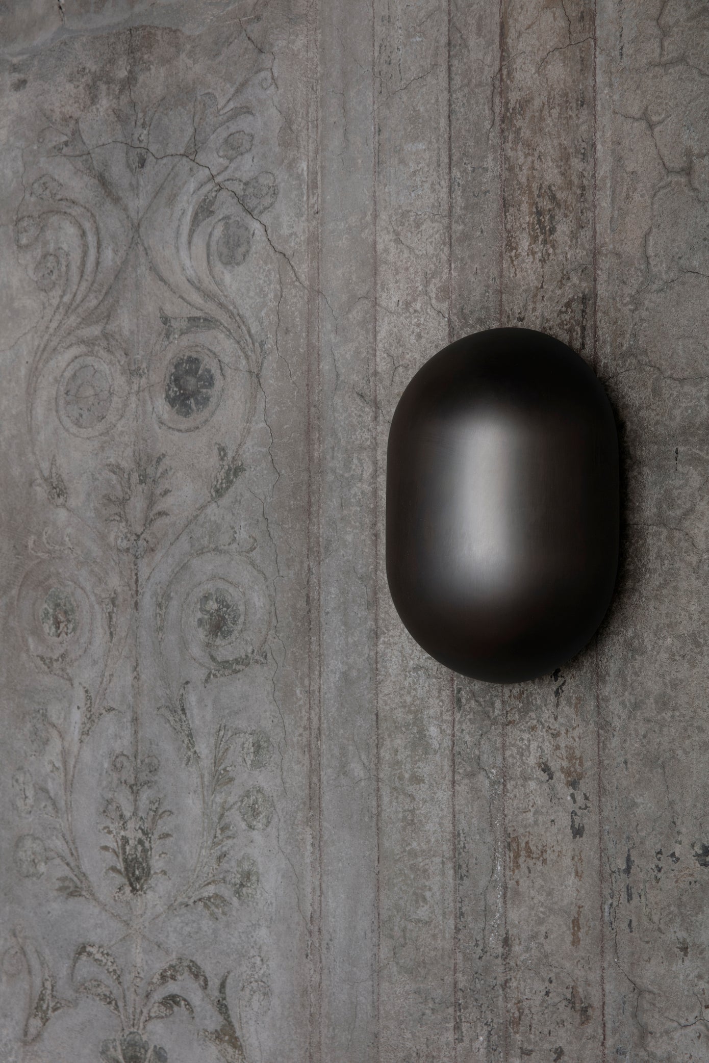 The hemispherical shade made of brass with a gunmetal finish gives the lamp an industrial character, while the brushed brass interior diffuses a gentle, atmospheric light. Howard Wall Lamp is perfect as a mood light in the hallway, living room, or kitchen – individually or in a series. It pairs beautifully with other elements from the Howard collection.