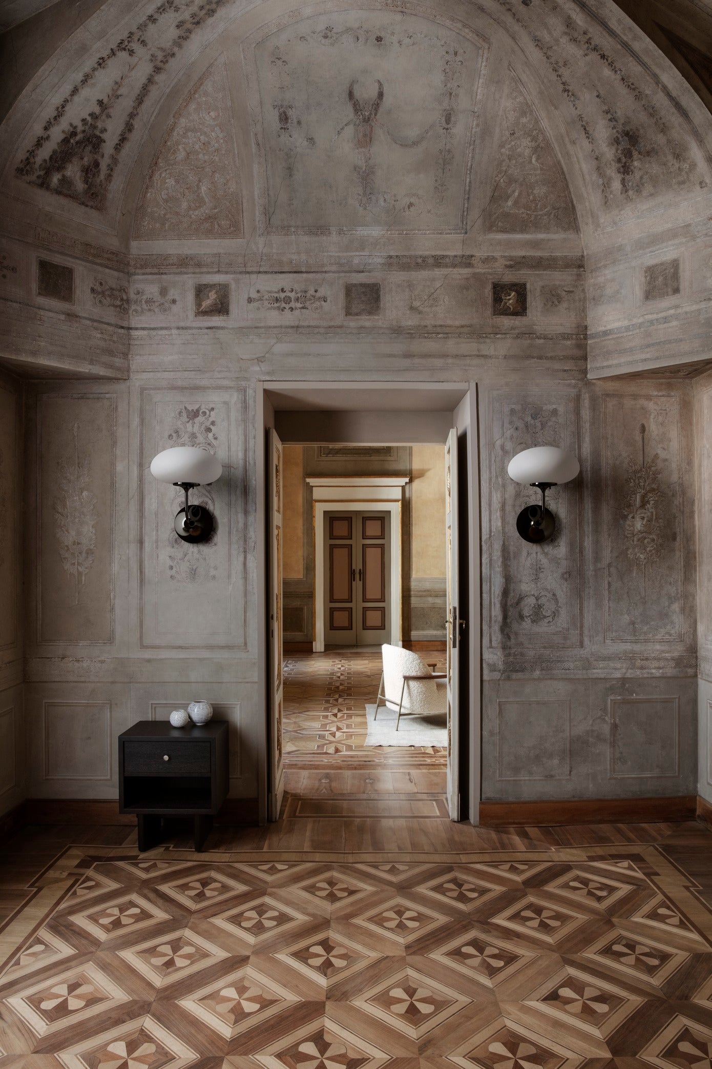 Made from die-cast metal and blown milk glass, the wall lamp offers not only exceptional aesthetics but also practical functionality – a rotating, cylindrical dimmer located under the shade allows for intuitive light intensity adjustment. The Stemlite Wall Lamp harmonizes perfectly with other models from the Stemlite collection, creating a cohesive atmosphere in both modern and classic interiors.