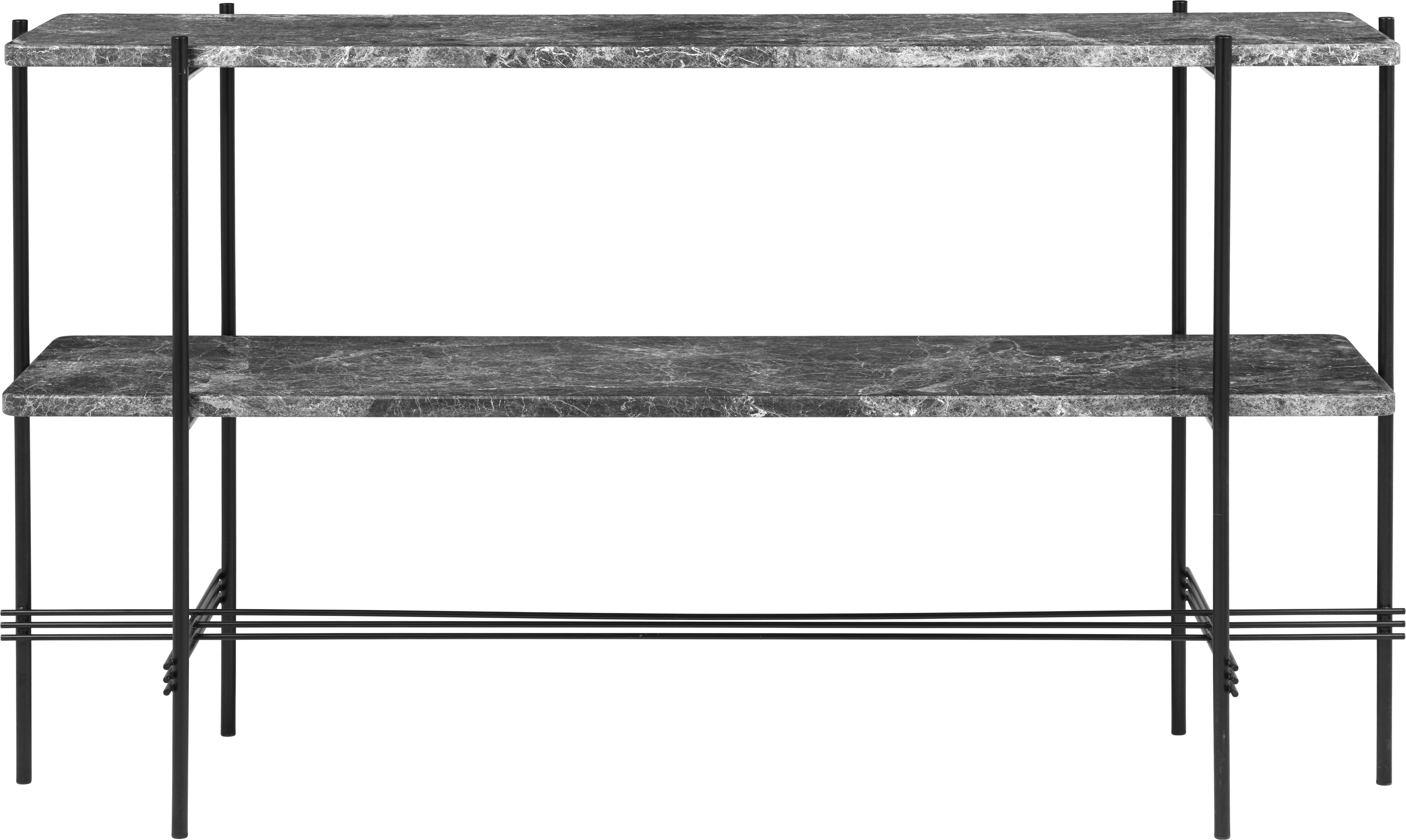 The furniture is available in two variants: with one or two tops, which increases its functionality and allows it to be tailored to the user's needs. There are various marble finishes to choose from – from the deep green of Green Guatemala to classic white Carrara, black Marquina, or subtle Travertine. The metal base is available in black, brass, or polished steel, adding a modern character and elegance to the whole. Console TS is the perfect combination of decorative design with practical function.