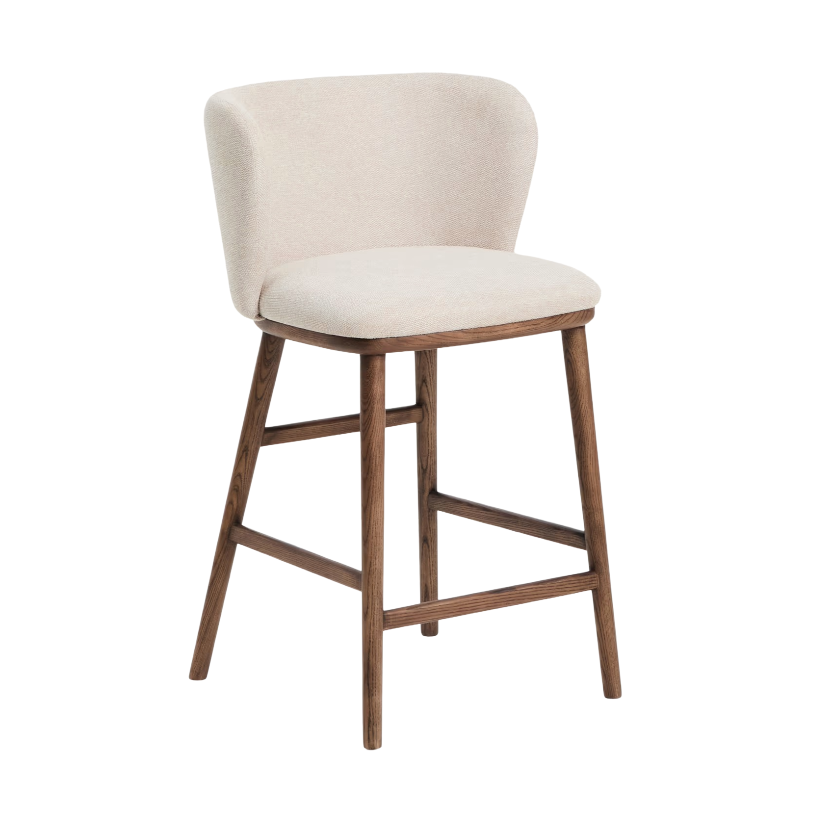 Bar Stool CISELIA beige chenille with dark ash base