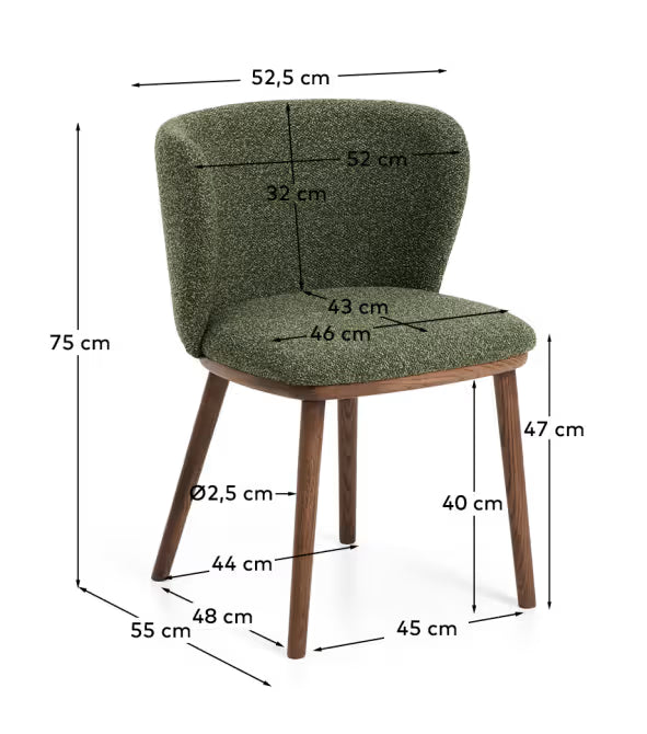 Ciselia Chair in Dark Green Chenille with Dark Ash Base
