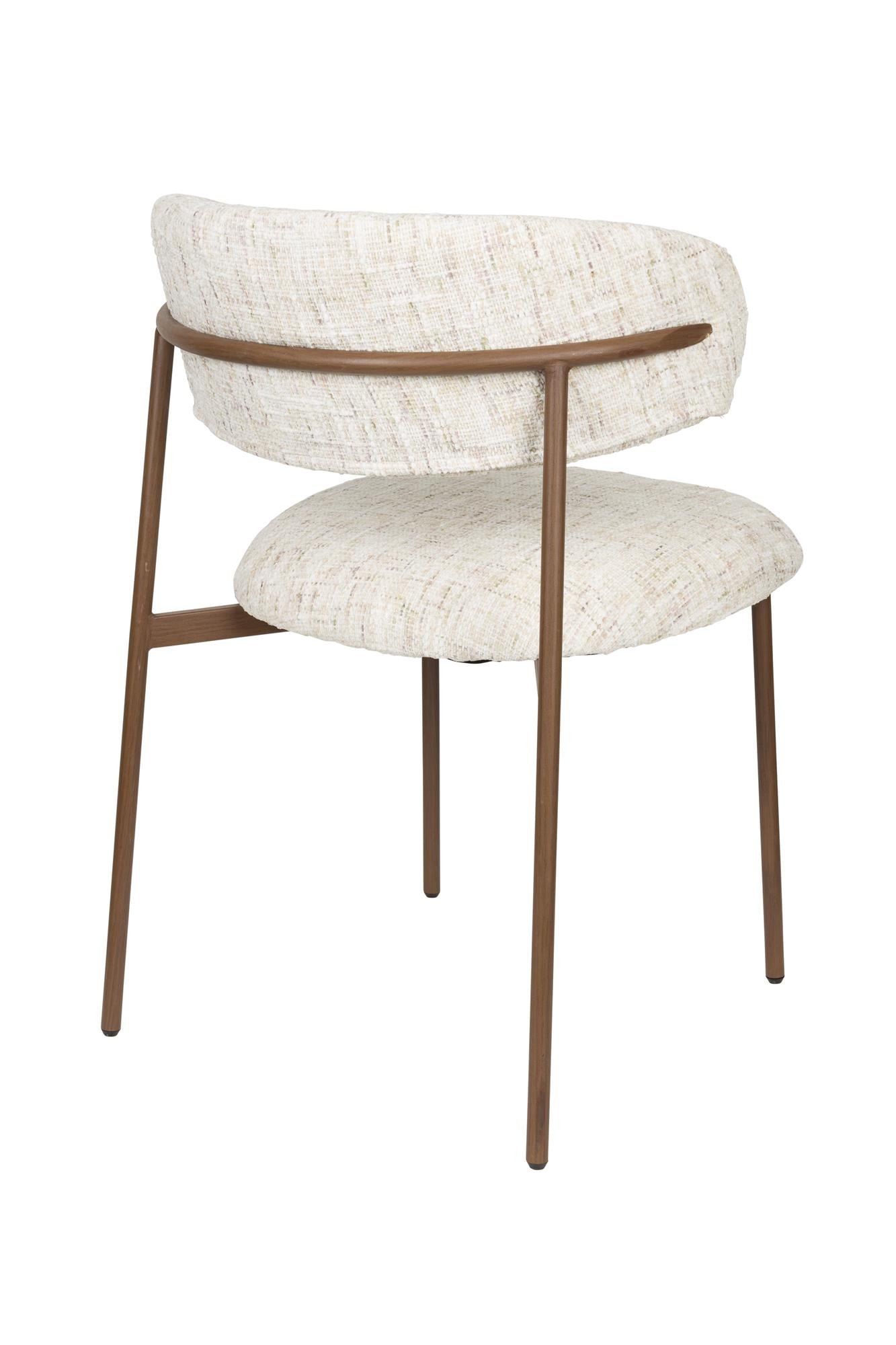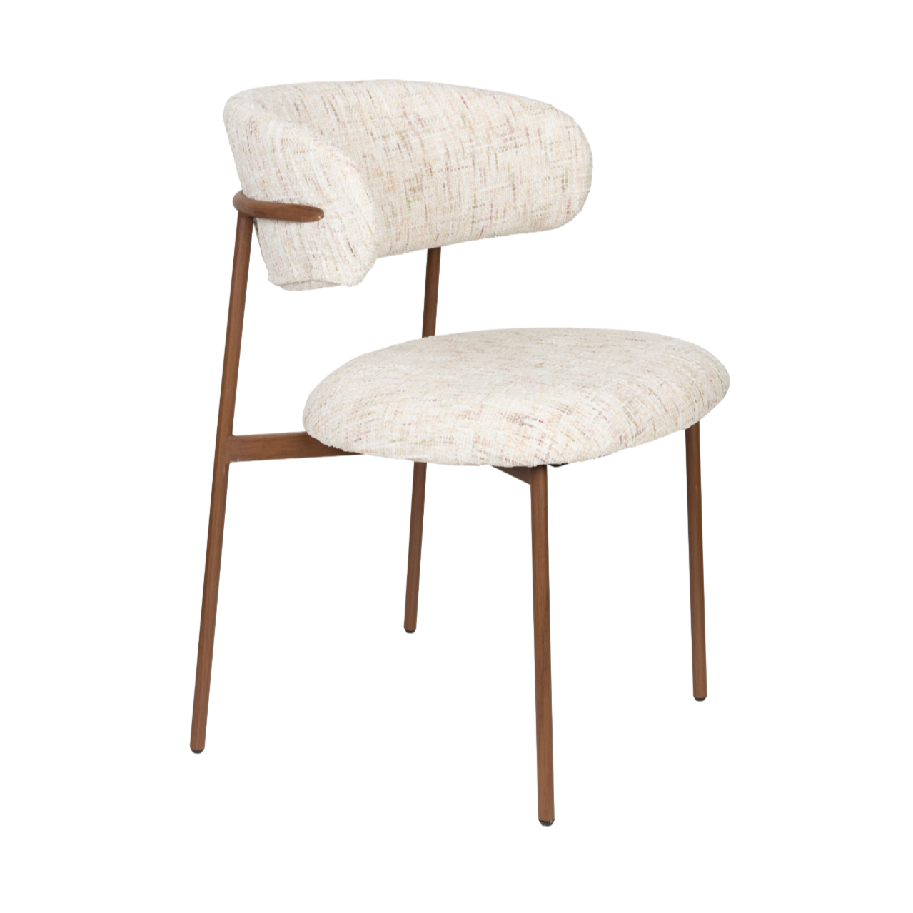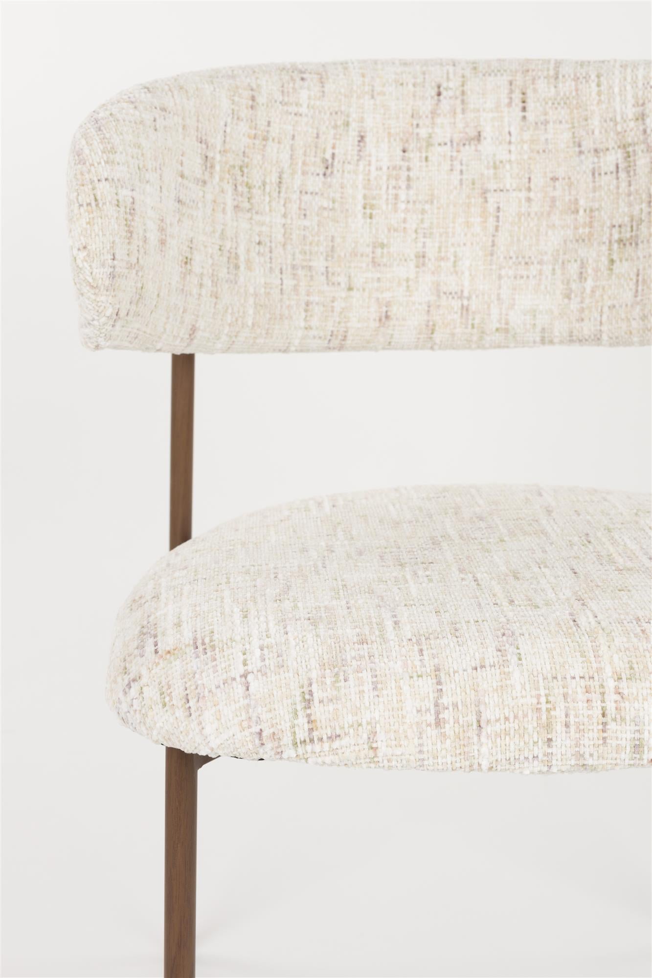 Stylish chair Claes with a modern design is the perfect combination of comfort and elegance. The soft, upholstered seat and ergonomic backrest provide comfort during everyday use, while the delicate white shade of the fabric brings a cozy and warm atmosphere to the interior. The simple form combined with a wooden-colored metal base fits perfectly into modern, Scandinavian, and minimalist interiors.