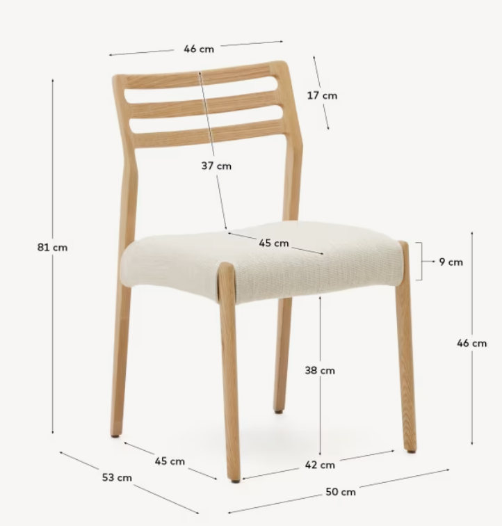 Cudia Chair is a contemporary interpretation of Scandinavian minimalism – light, subtle in form, and refined in details. Made from solid oak wood with a natural finish, it perfectly combines durability with a warm, inviting character. Upholstered in beige chenille fabric, it brings softness and texture to any interior – from modern to more classic styles.