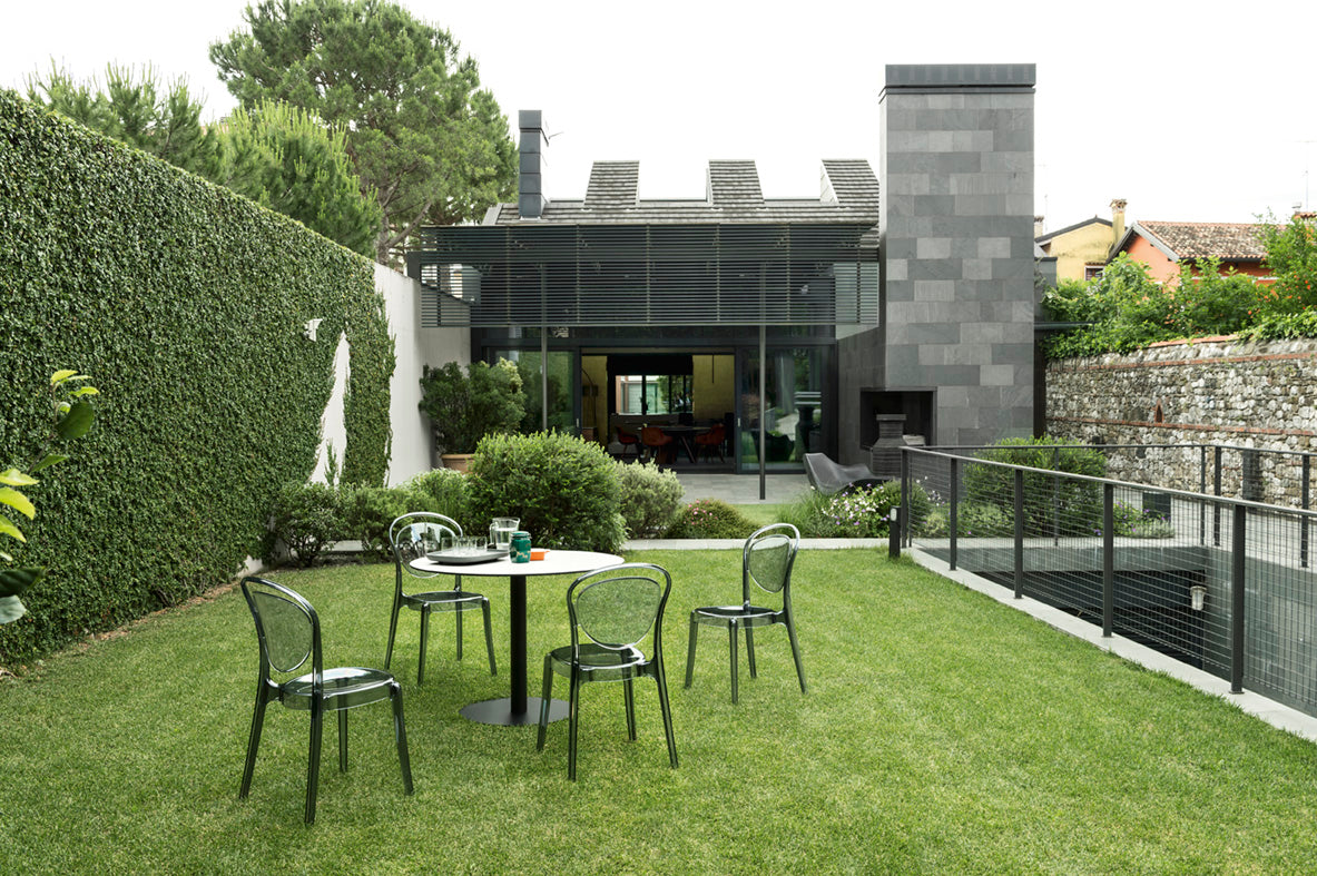 Thanks to the use of durable polycarbonate, the Parisienne chair is resistant to impacts and weather conditions, while also being lightweight and easy to move. The ability to stack up to four pieces makes this model incredibly practical. It works wonderfully in kitchens, bars, and outdoor spaces such as terraces or café gardens, offering comfort and style in every situation.