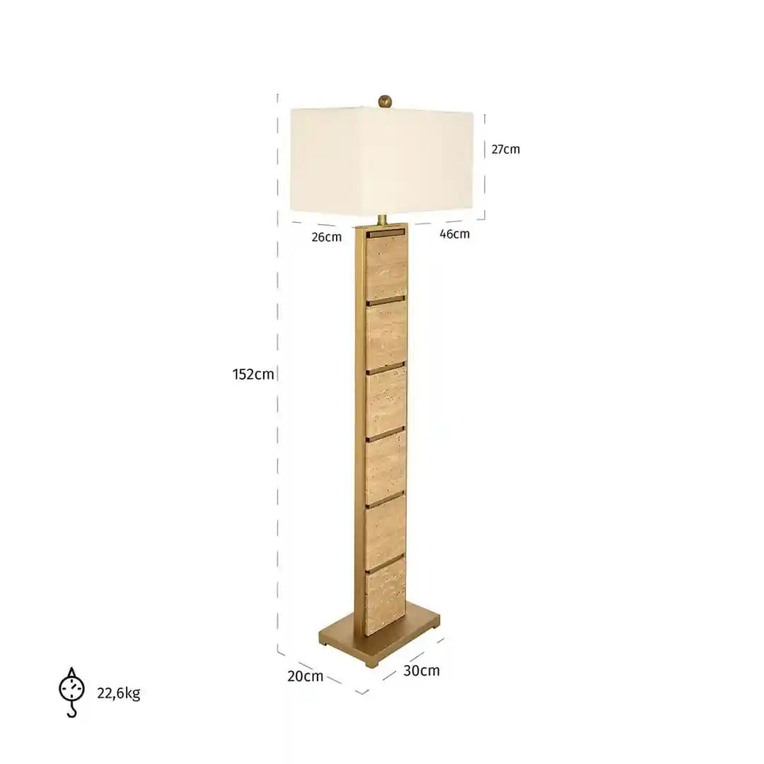 This unique floor lamp Meyra is a combination of modern design and natural elegance. The stable structure made of metal is enhanced with marble elements, which give the whole a refined character. The rectangular shade in a light hue subtly diffuses the light, creating a cozy atmosphere in the room. Thanks to the harmonious combination of materials and geometric form, the lamp works wonderfully in both modern and classic interior arrangements.