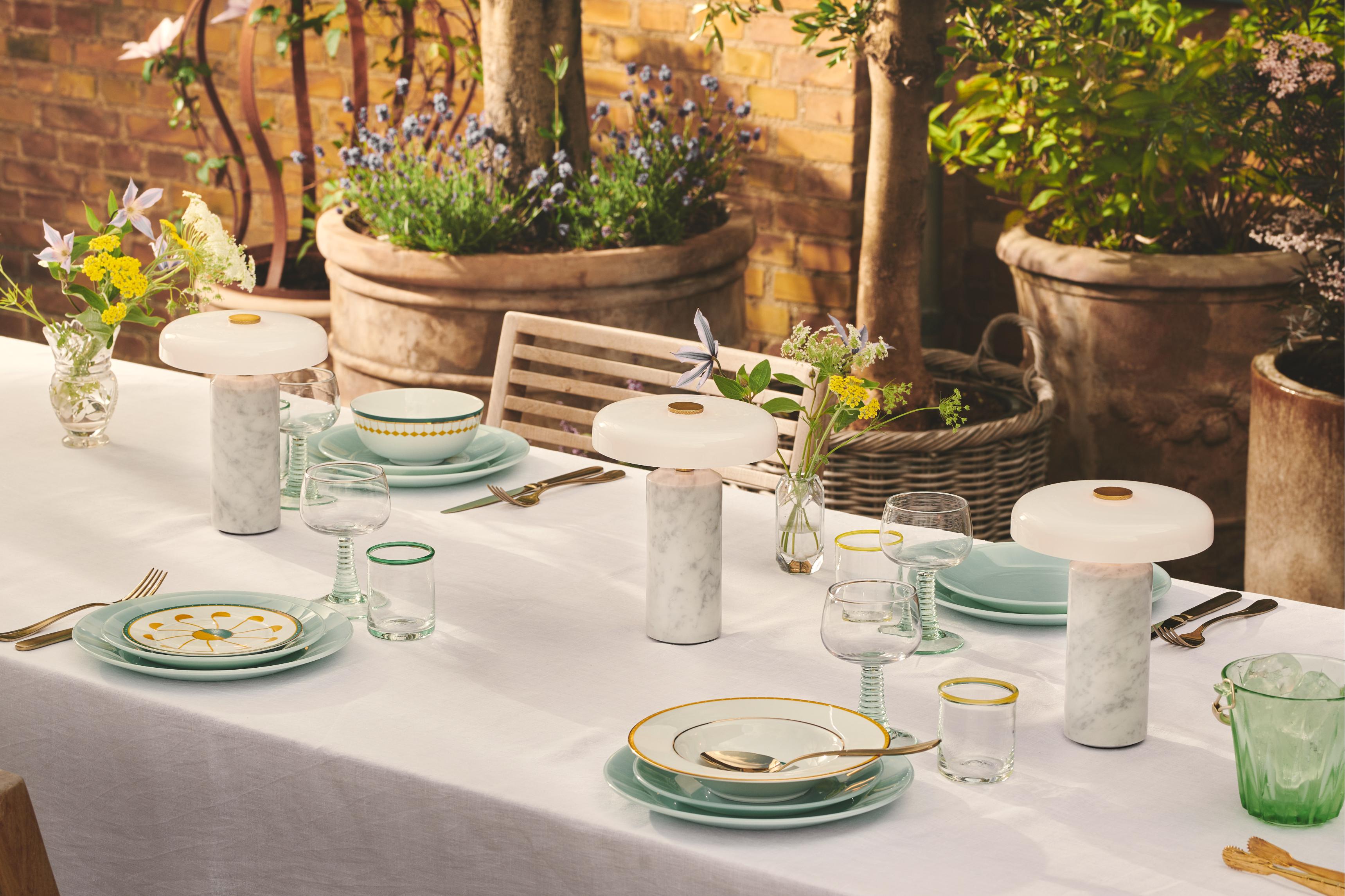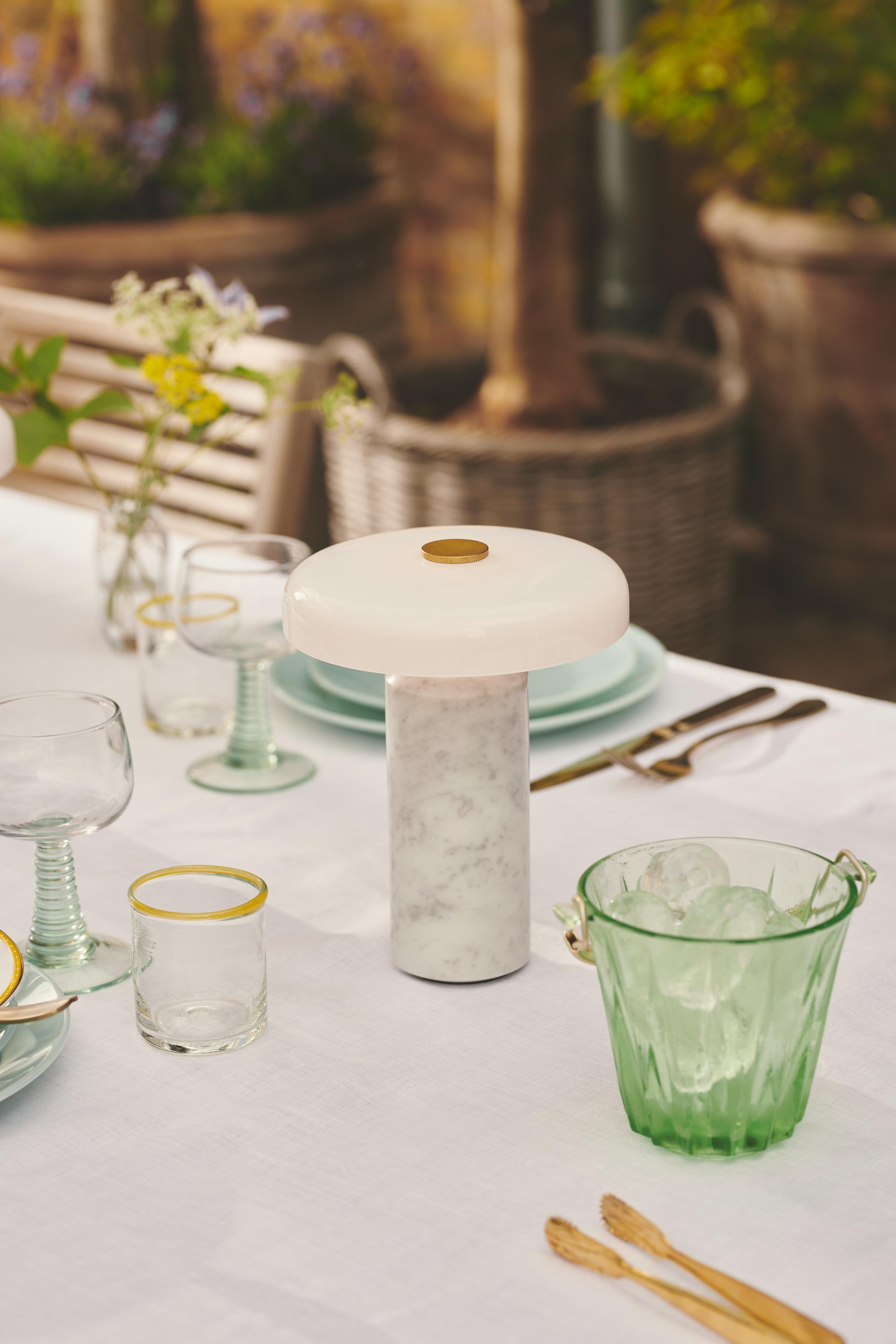 Portable lamp TRIP white marble with milky white glass