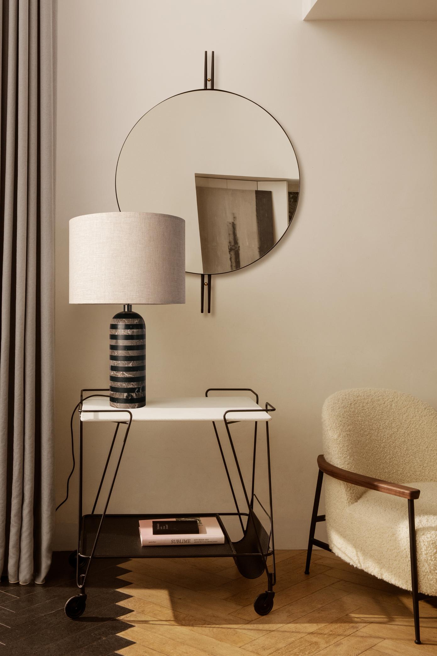 Its minimalist aesthetic, high-quality materials, and attention to detail ensure that the lamp Gravity not only illuminates but also decorates the interior. The marble combined with the fabric shade gives the whole a sophisticated and contemporary character, creating a cohesive, sculptural silhouette.