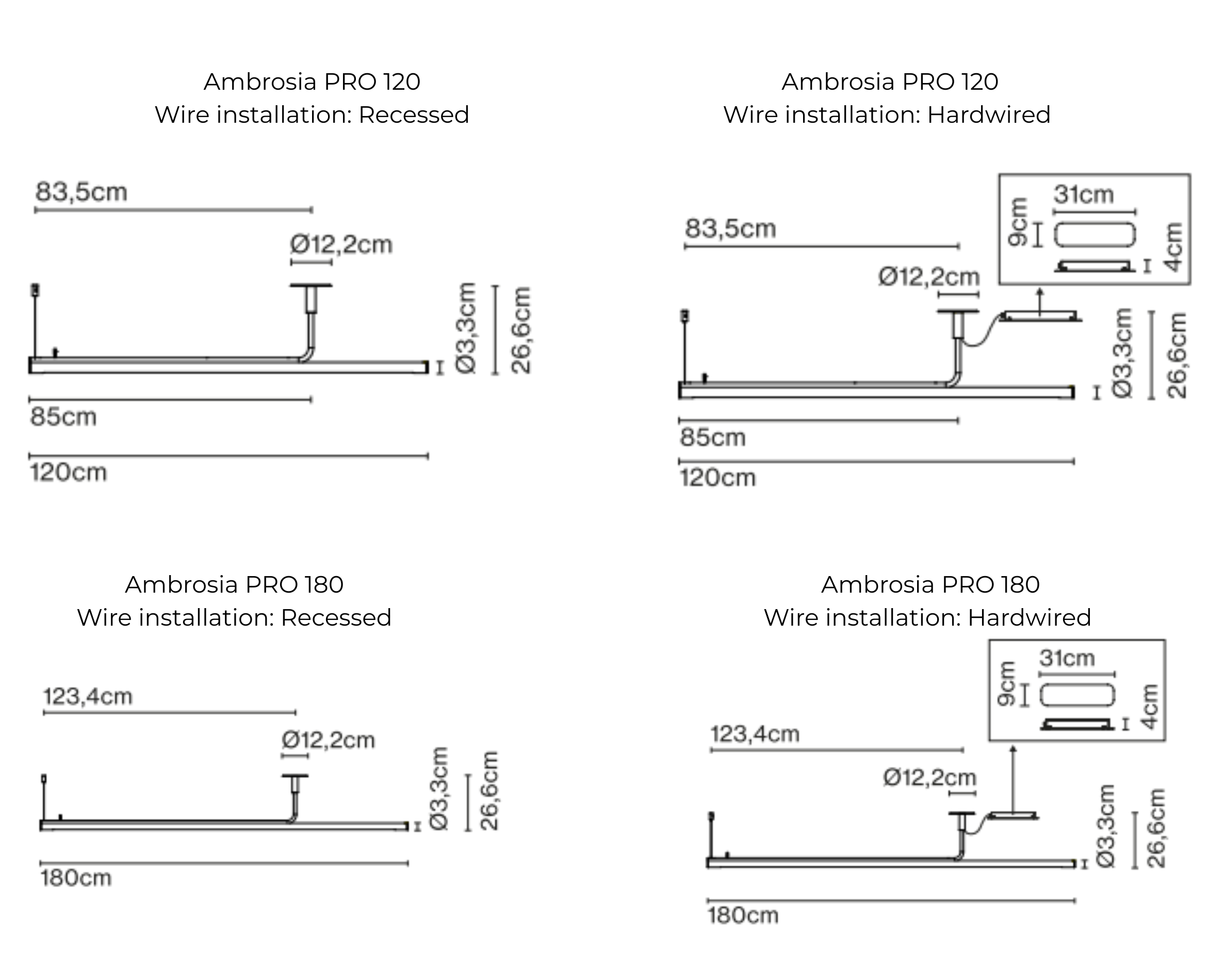 Length: 120 cm (recessed wiring)
