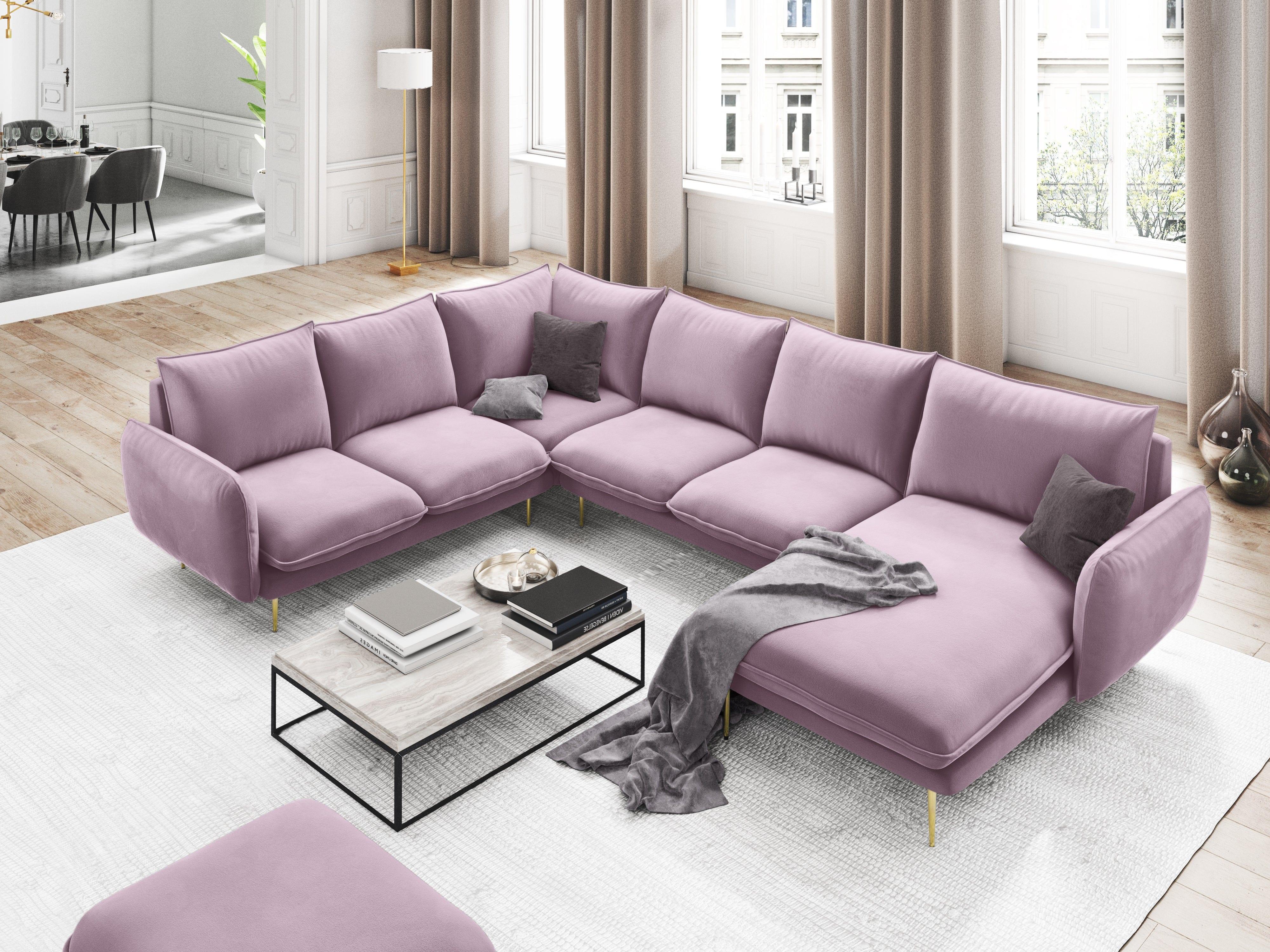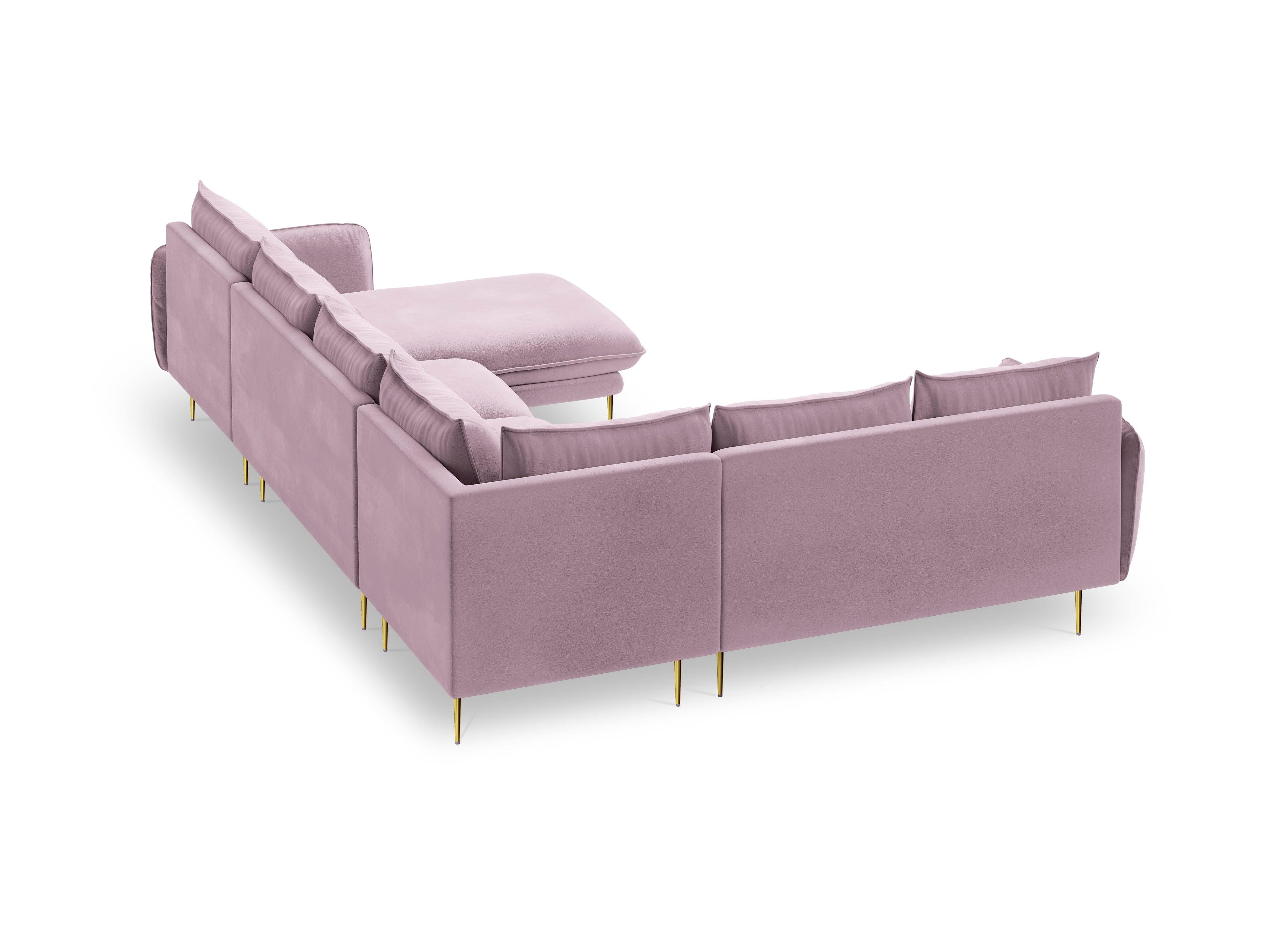 Narożnik lewostronny aksamitny panoramiczny VIENNA pudrowy róż ze złotą podstawą Cosmopolitan Design    Eye on Design