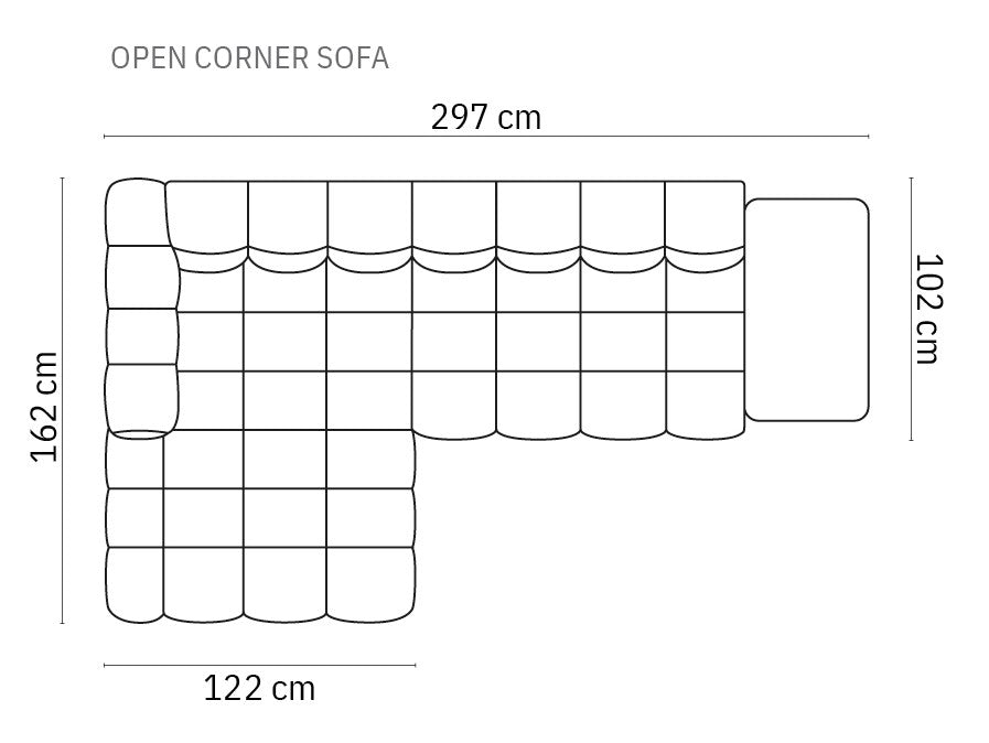 Left-handed 4-seater velvet corner open with a Sky table light gray