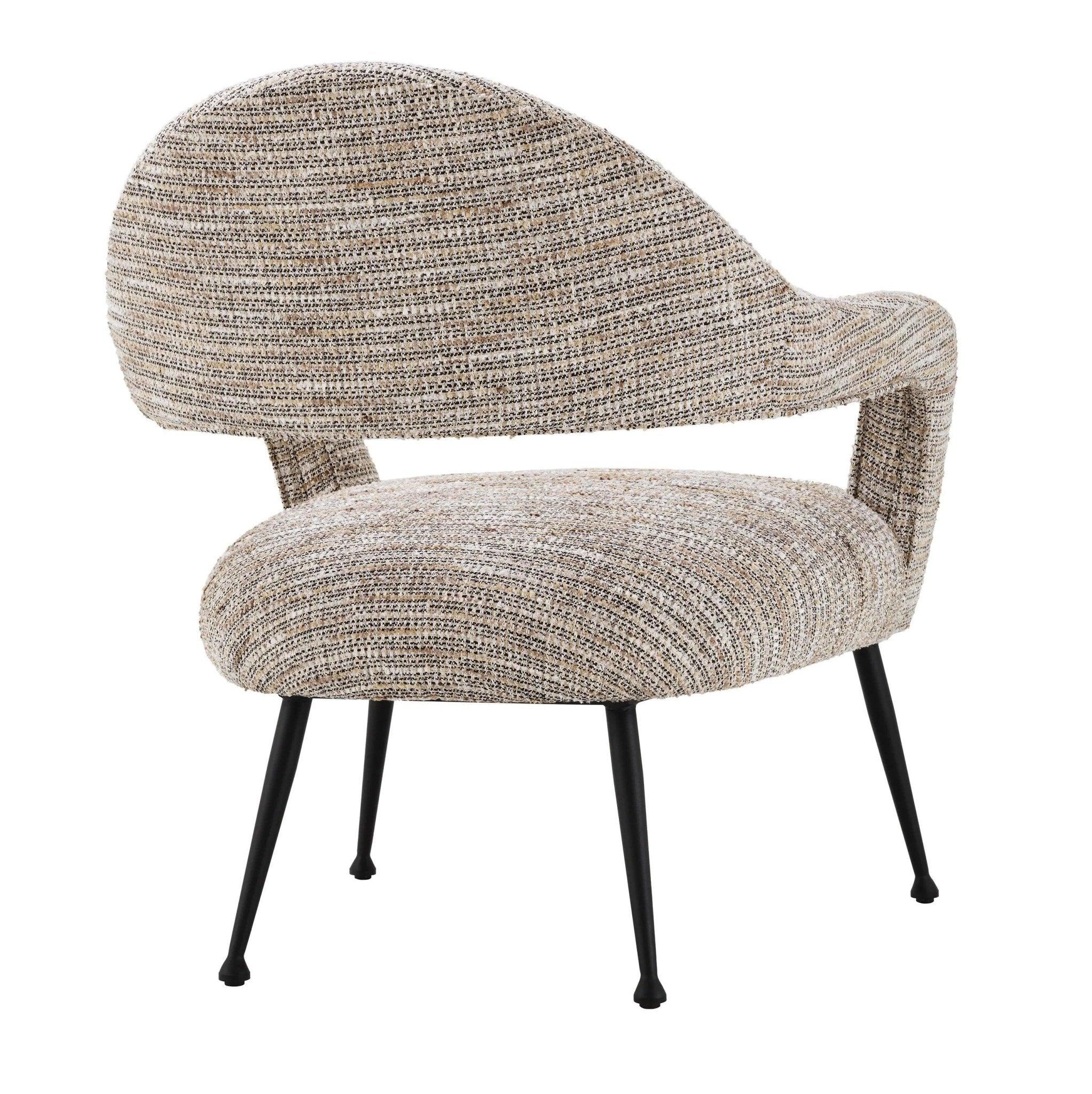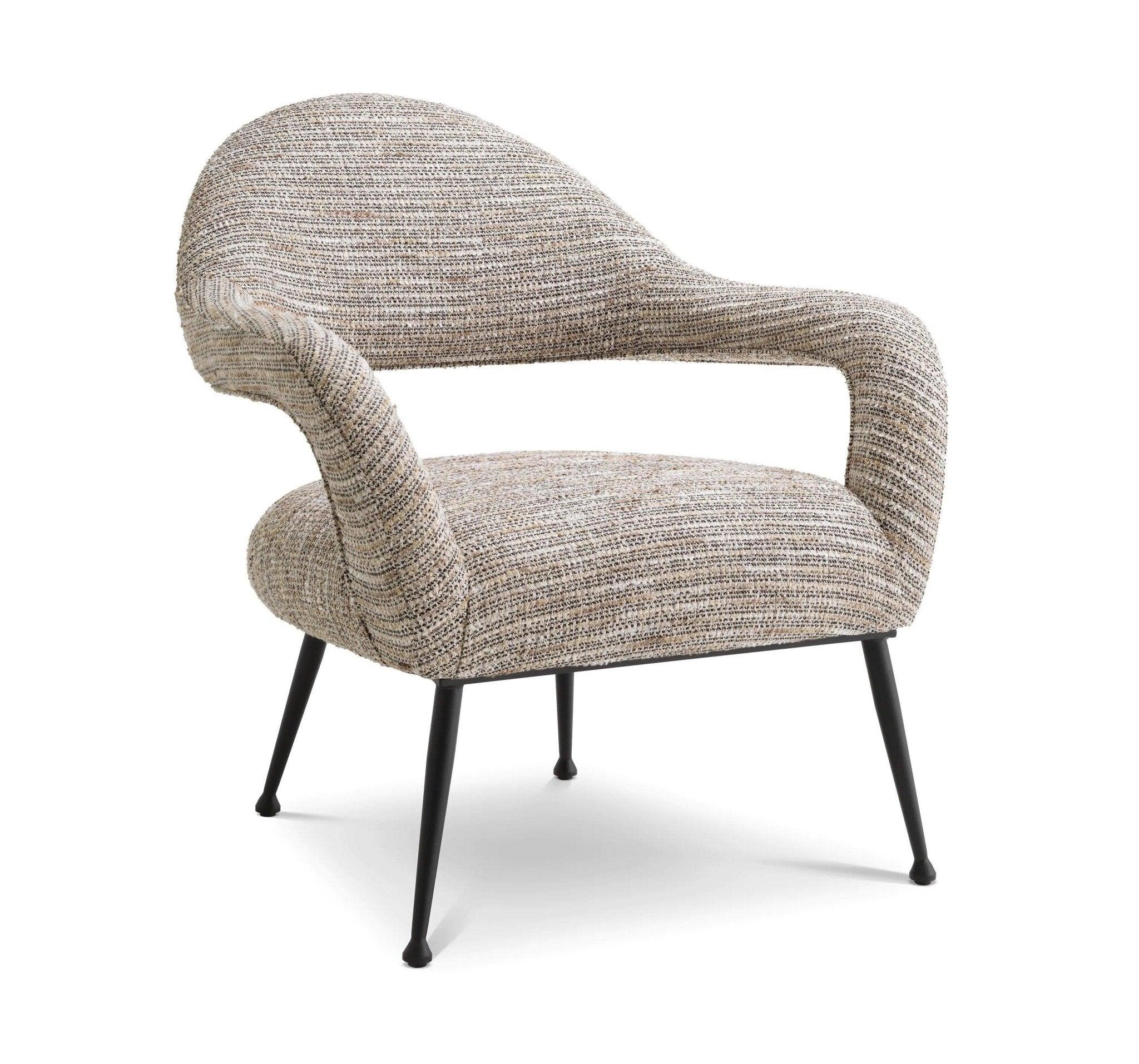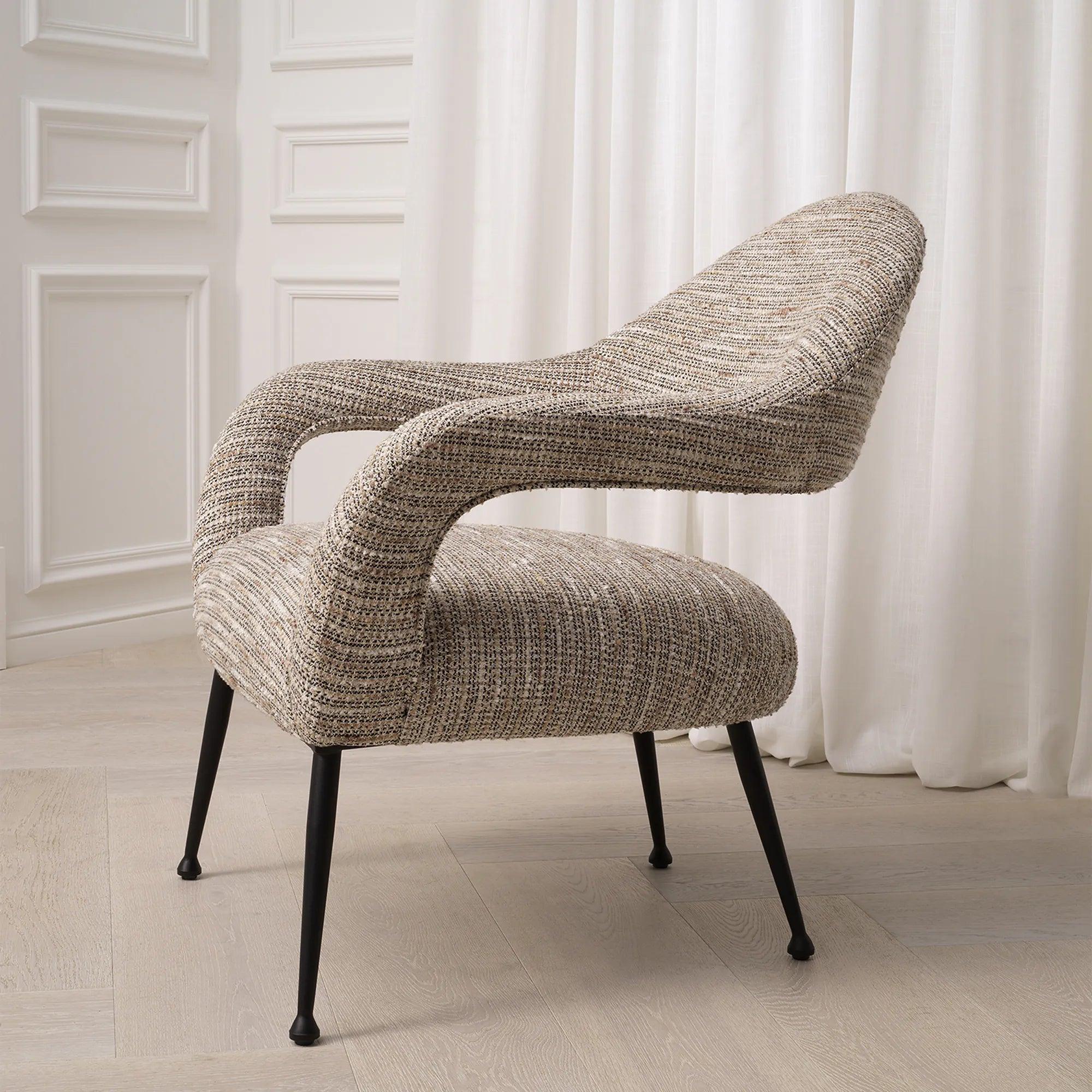 Beige armchair Lombardi is like entering an elegant boutique in the heart of Paris, where echoes of past eras combine with modernity. His lush beige upholstery Mademoiselle reminds of luxury and sophistication, and a mixture of broken white and golden yarn with short fringes gives it character. Not only Armchair, it is a feeling that raises memories of Vintage Haute Couture and the desirable Bouclé's tweed jackets, which were a symbol of class and style.