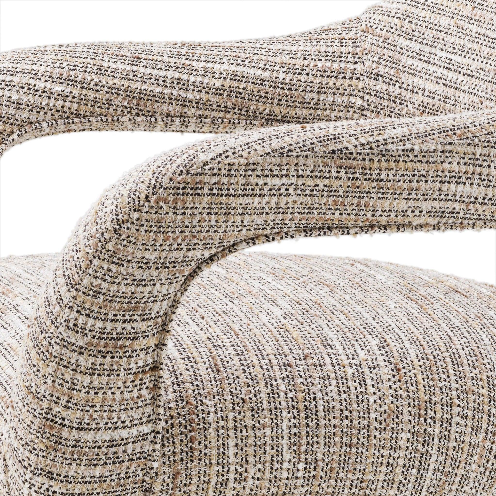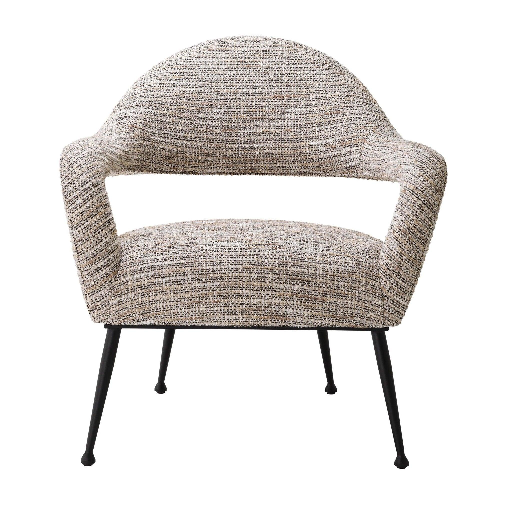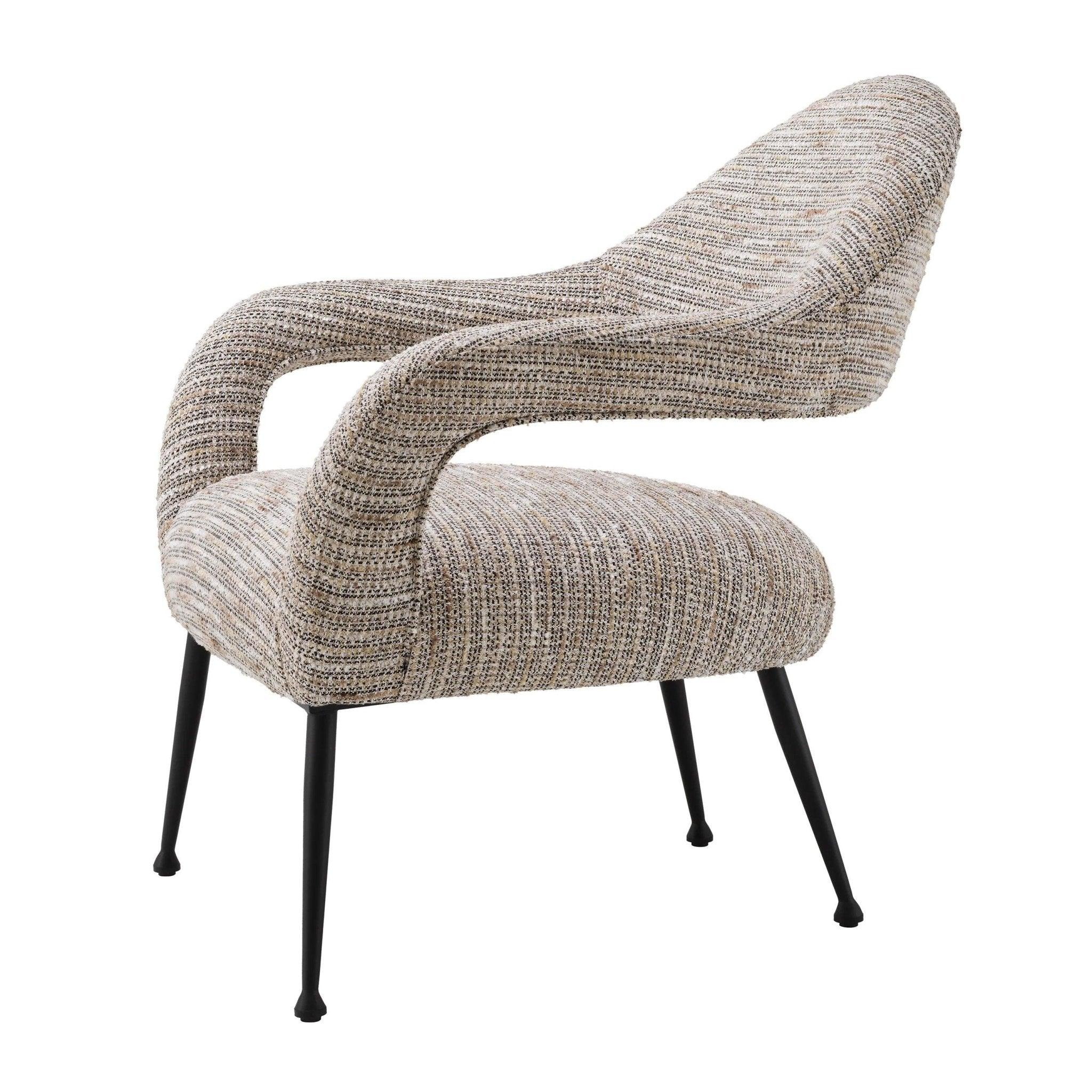 Beige armchair Lombardi is like entering an elegant boutique in the heart of Paris, where echoes of past eras combine with modernity. His lush beige upholstery Mademoiselle reminds of luxury and sophistication, and a mixture of broken white and golden yarn with short fringes gives it character. Not only Armchair, it is a feeling that raises memories of Vintage Haute Couture and the desirable Bouclé's tweed jackets, which were a symbol of class and style.