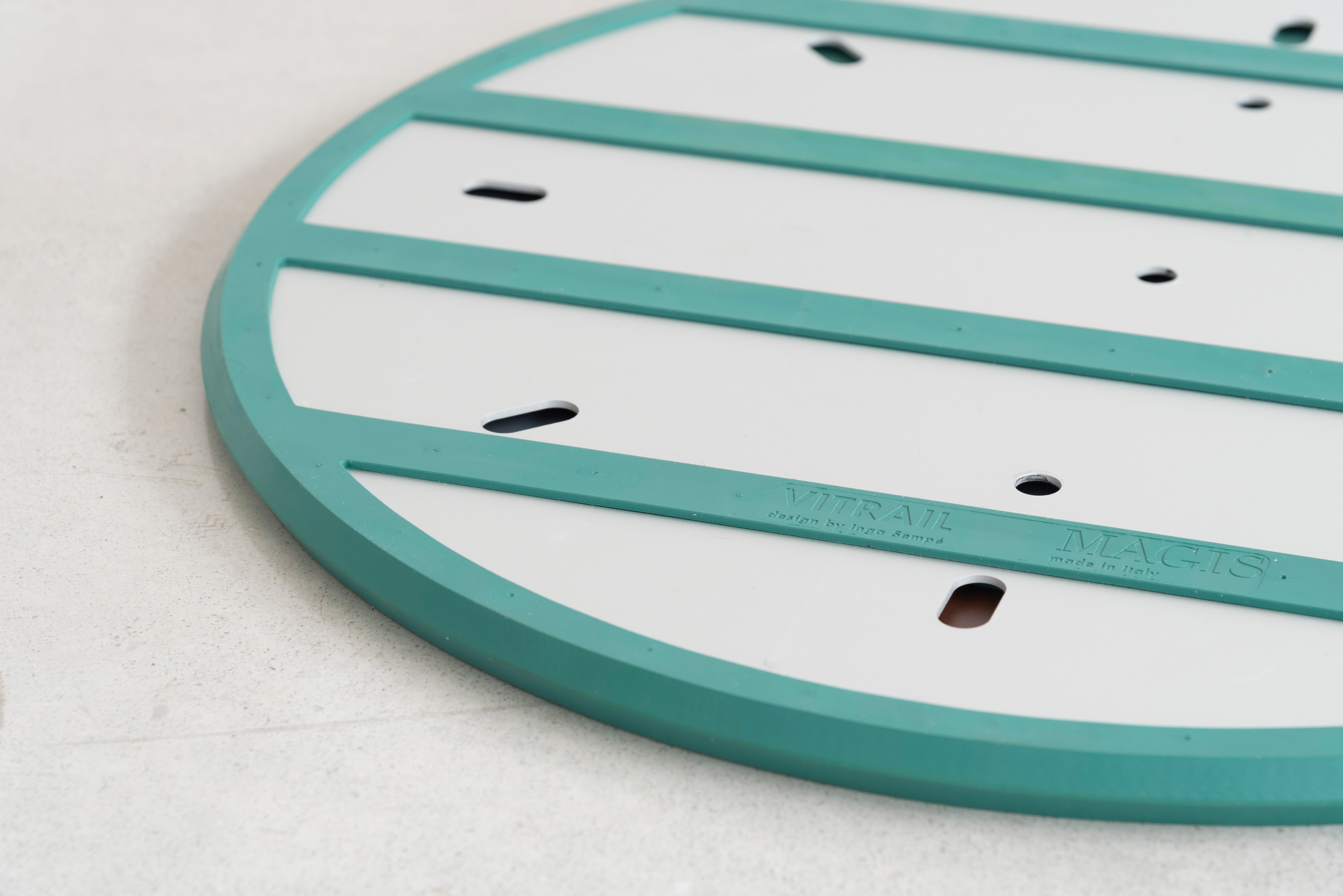 Rectangular wall mirror Vitrail by Inga Sempé is an elegant and expressive choice for lovers of original design. Thanks to the vertical, colorful stripes of tinted glass, the mirror surface gains a modern yet subtle character. The rubber frame, available in two color options – light gray and green – ensures that the product stands out while perfectly complementing various interior styles.