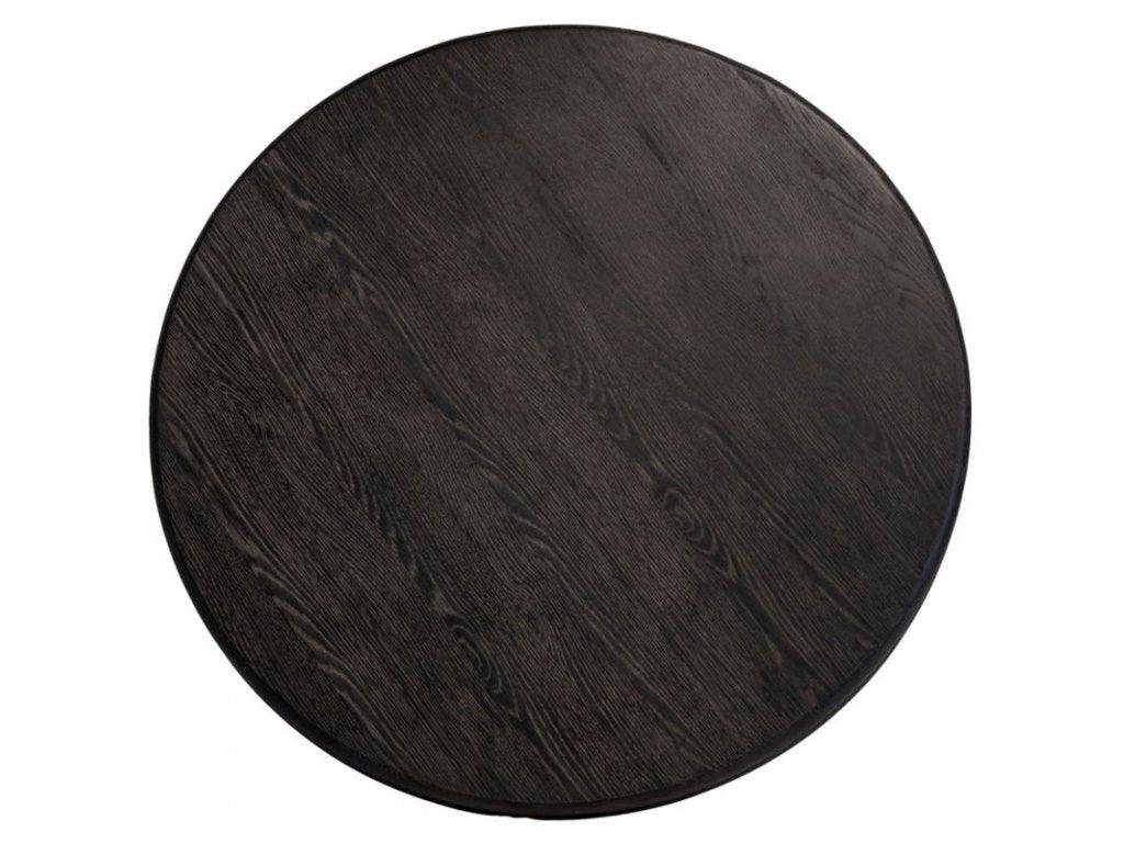Dining table The round macaron in shades of dark brown and brass is a great choice for those who value unique design and elegance. This lavish table was created using metal in the color of aged brass and dark brown finish. The table top was decorated with beautiful oak wood, creating a harmonious and effective composition.