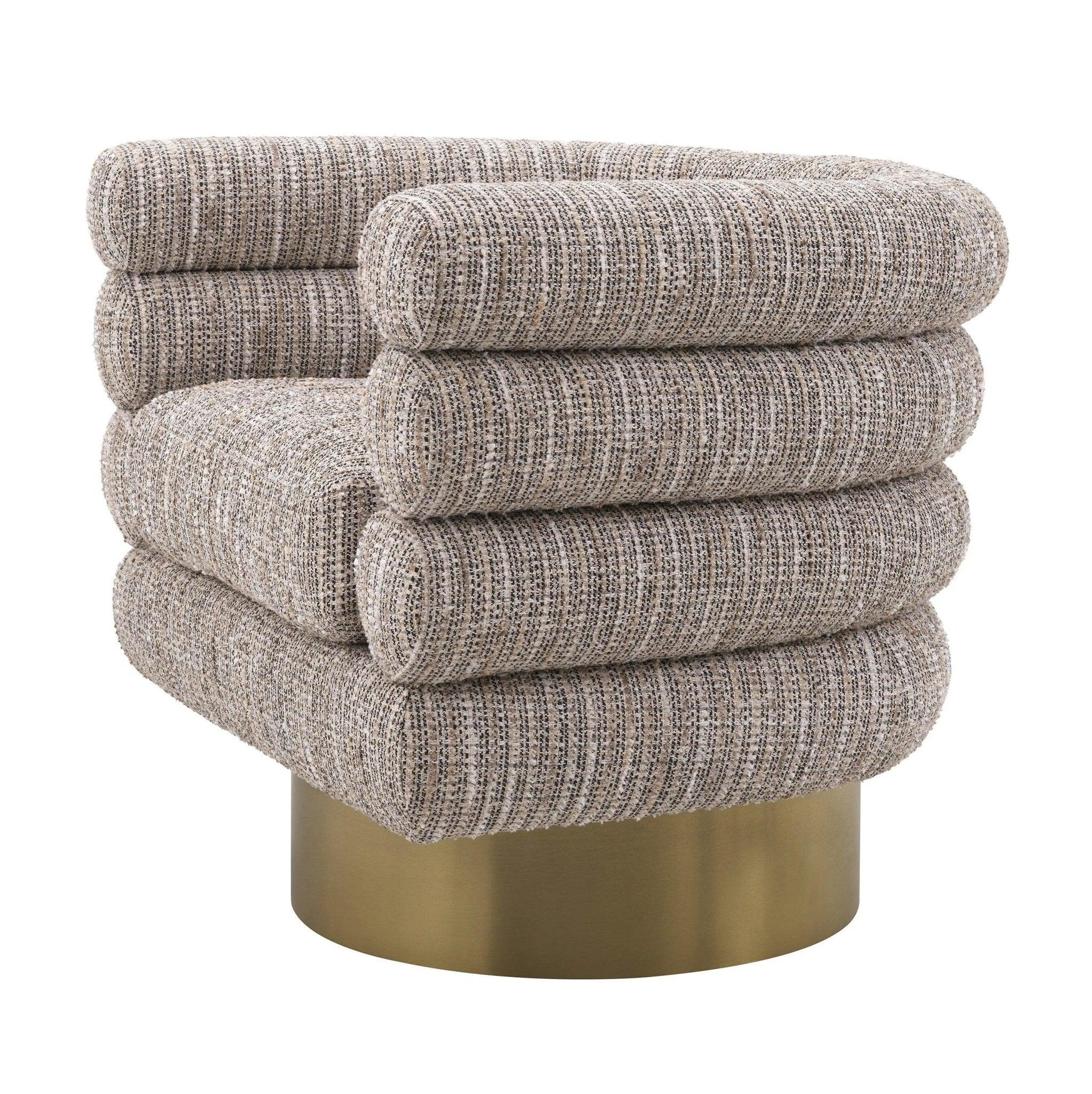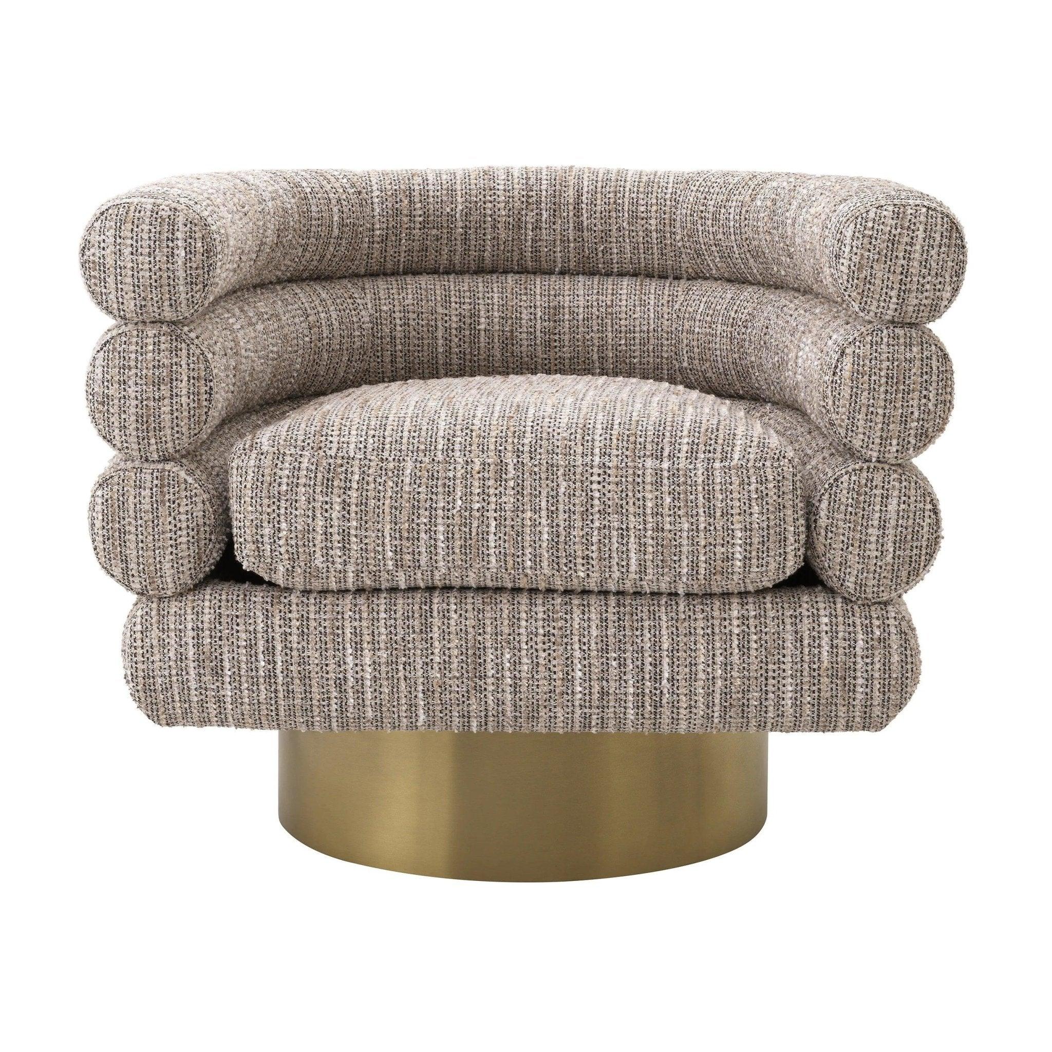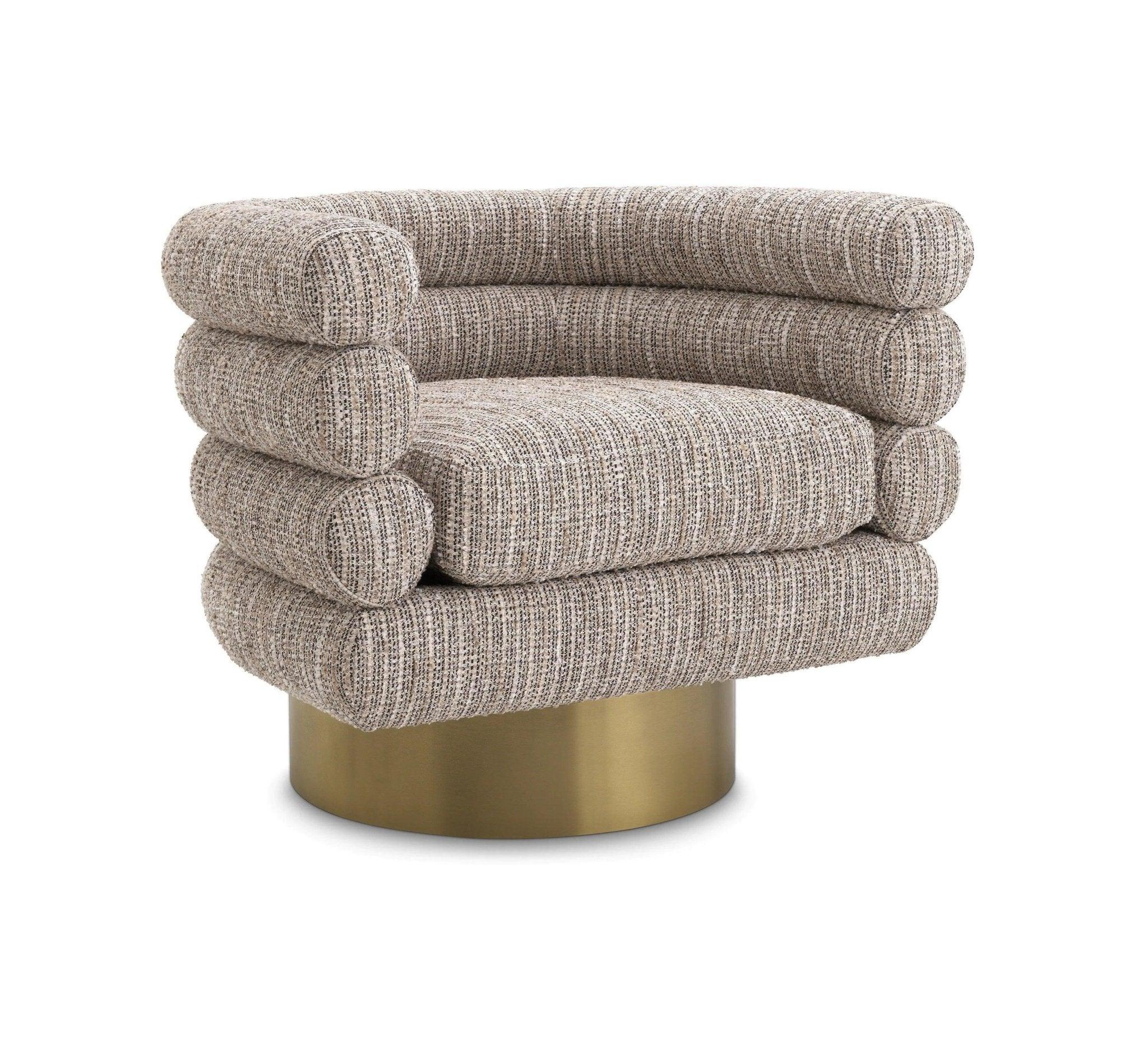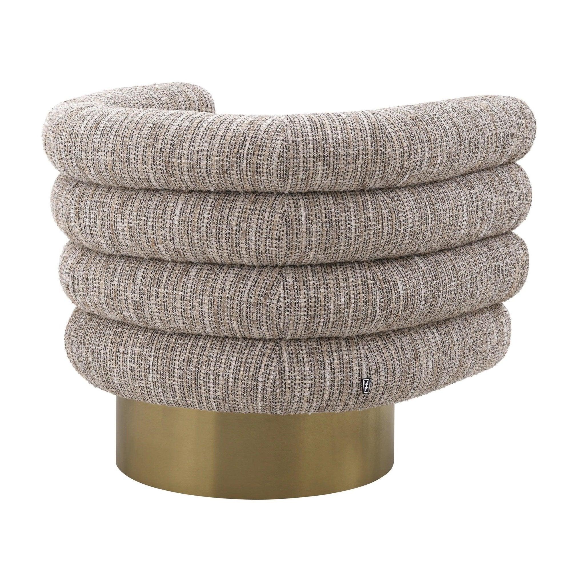 Base beige chair, made of the highest quality brushed brass, gives it solidity and durability, and at the same time introduces a subtle element of industrial charm. Brass is a material with a unique glow and exceptional durability, which makes this armchair not only stylish, but also a practical choice.