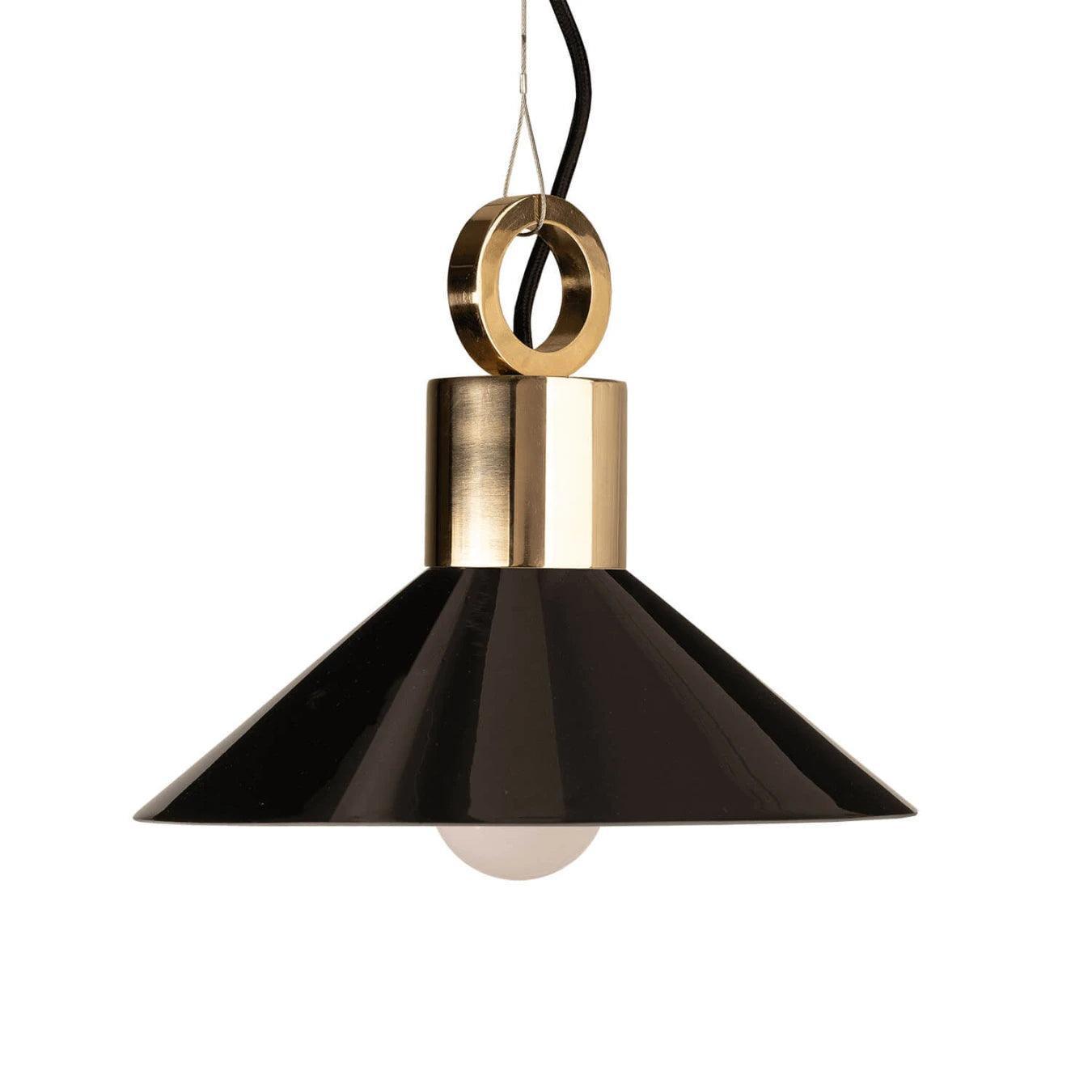 Designer hanging lamp Malmo The style reaches into Scandinavian patterns. Her lampshade was manually blown by friendly craftsmen from the local Polish steelworks. Black hanging lamp Malmo is covered with opaque paint, which is why the light harmoniously spreads down and sideways. Glass is bound by a lid made of solid, natural brass, which will cover with a charming patina over time. The lamp is available in two sizes of the lampshade and two variants of finishing - flat represents a calm, disciplined classics, while the geometric ring gives the lamp a deep expression.