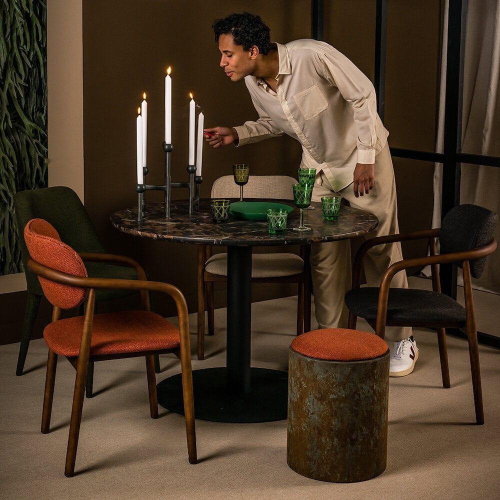 The combination of dark brown color with classic black adds a stylish look to the table, while a perfectly matched size makes it table It will fit into almost any space. RAMA made of stainless steel in the color of brushed gold makes the table solid and durable.