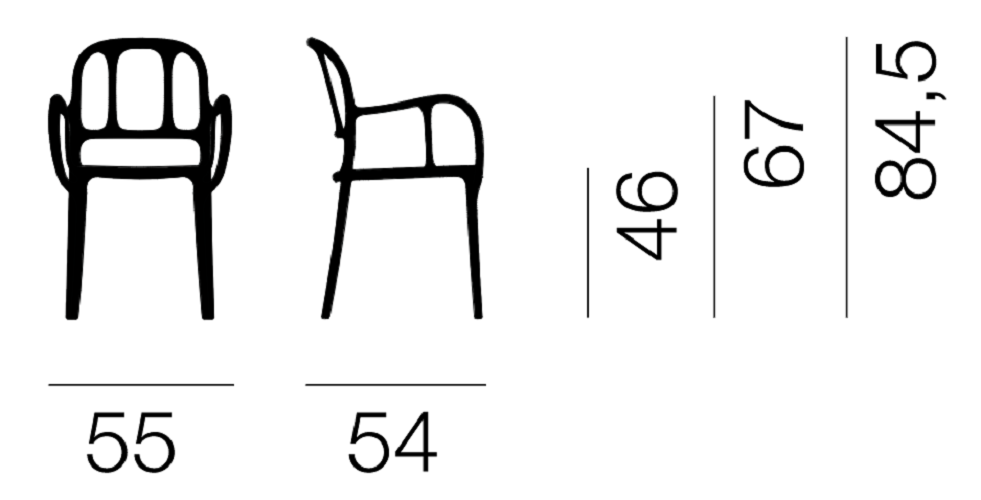 Outdoor chair Mila is a harmonious blend of classic design and modern functionality. Designed with outdoor spaces in mind, it is perfect for terraces, balconies, or gardens. With its elegant shape and refined details, it can also be successfully used indoors – in dining rooms, kitchens, or commercial spaces. The ergonomic backrest and armrests ensure comfortable use.