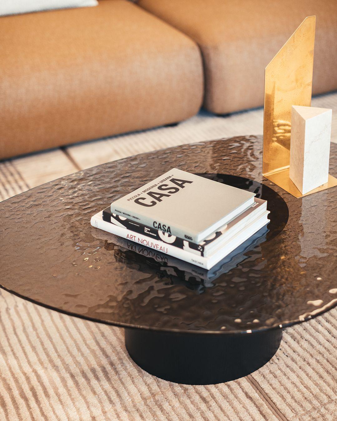 Sophisticated coffee table Mushroom combine exquisite materials and organic forms. A glass top with a convex cut, resembles beautiful and colorful glass jewels. A smooth, cylindrical and wooden base is slightly skewed, thanks to which it has the impression that the countertop is slightly suspended above it. Although the countertop is spacious, the coffee table will be a discreet addition to the living room, introducing a functional and impeccable design to any environment, without overwhelming.