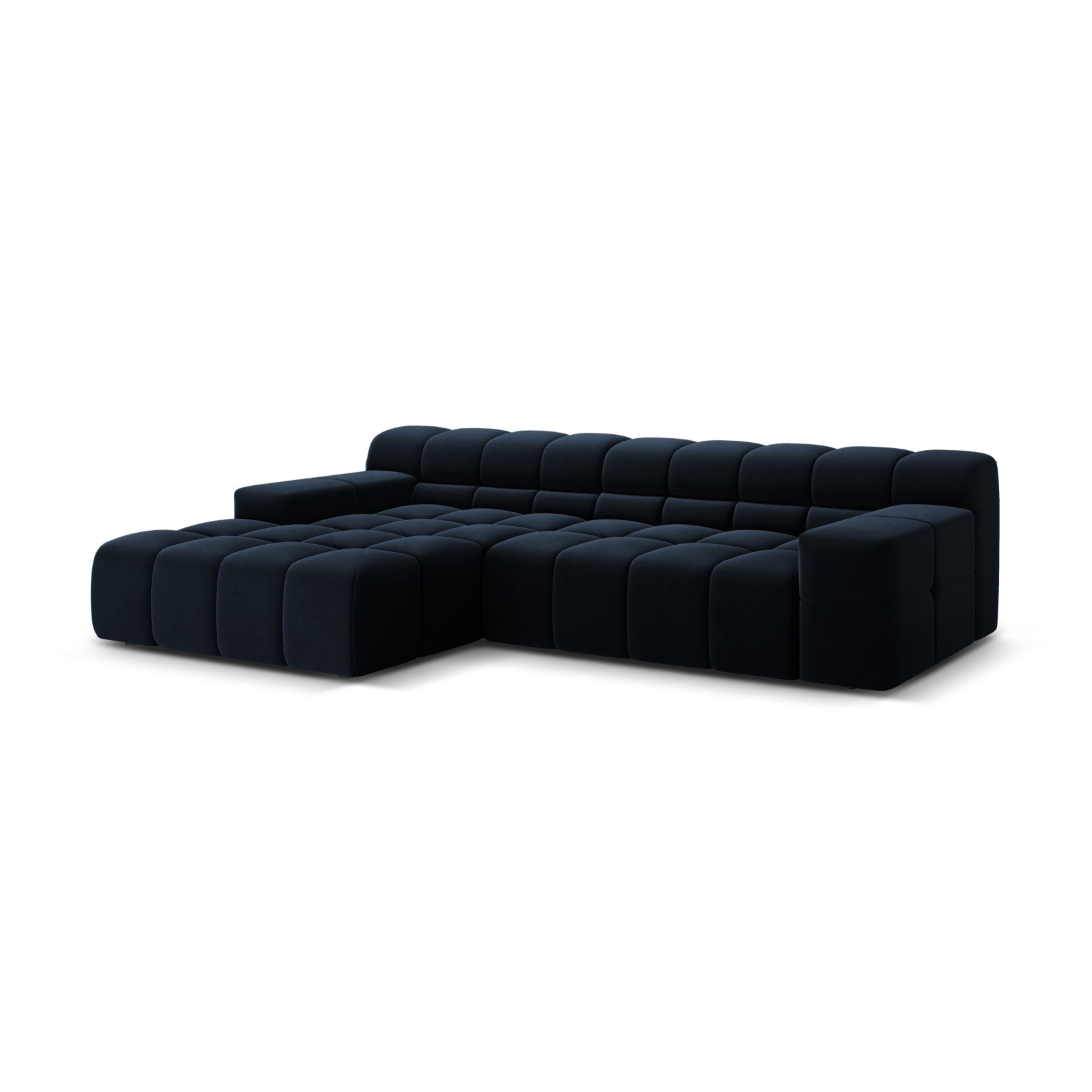 Left-facing 3-seater velvet corner sofa AGAVE navy blue