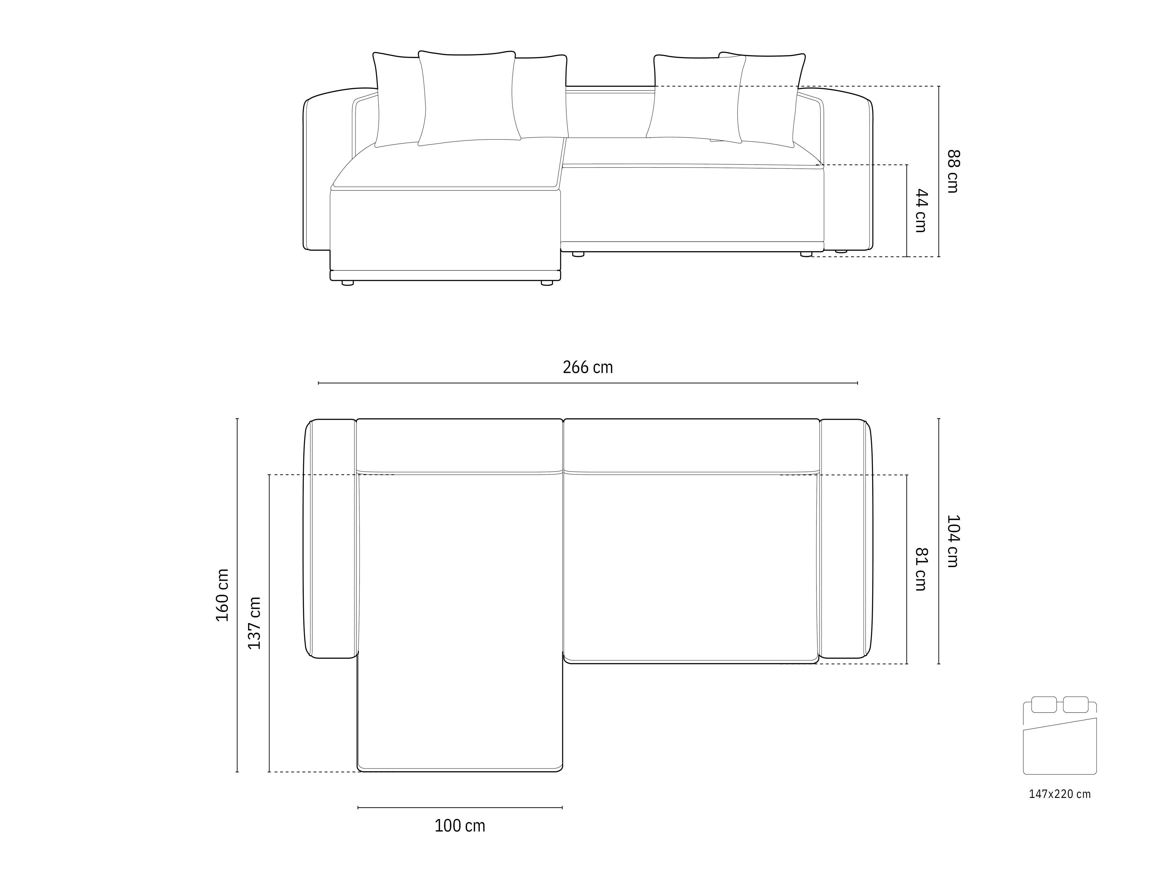 Left-sided corner sofa bed RIBES in brick corduroy