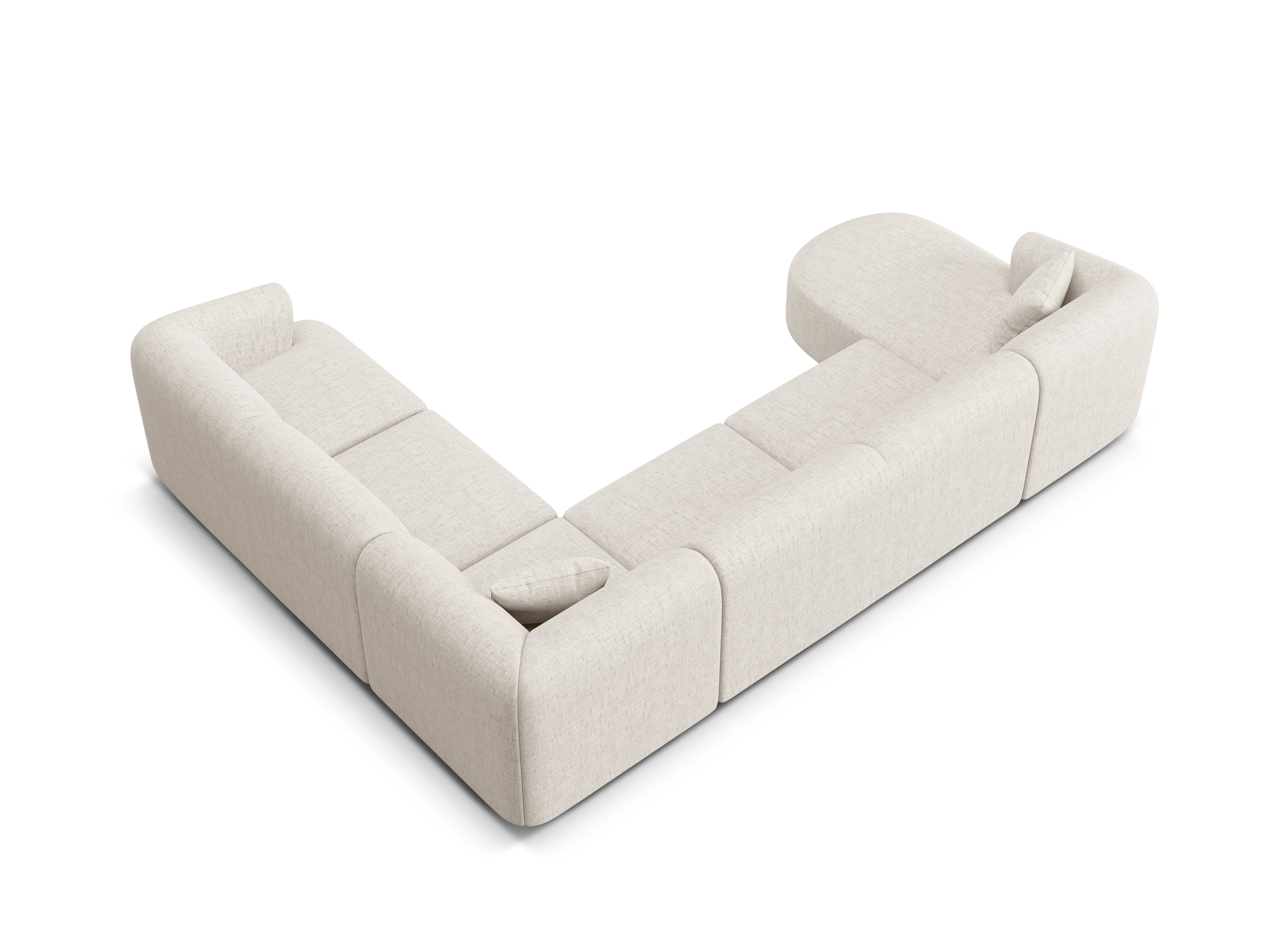 Right-facing panoramic corner sofa for 7 people CAMPI cream chenille