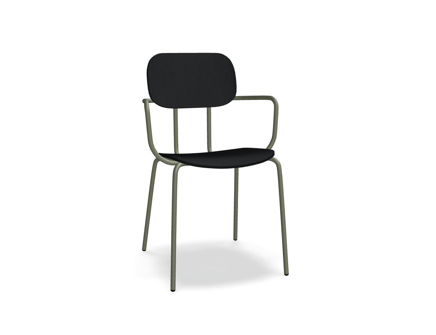 Plywood chair New School is a modern edition of a classic school chair, offering many configurations. In the four -legged version, with optional armrests, it will work in offices, canops, as well as in home spaces. The plywood seat is durable and easy to care, which makes them ideal for places with a high rotation of user.