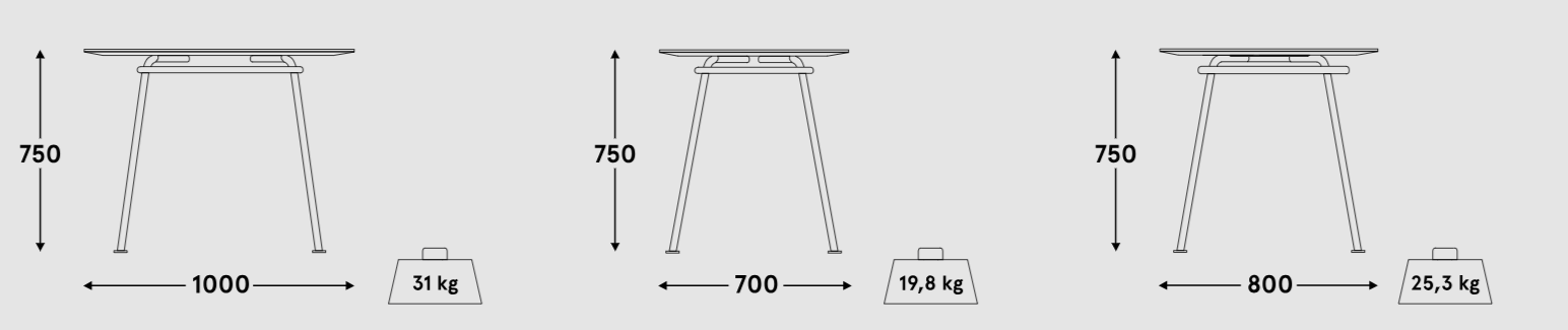 The 750 mm high top is made of easy to care MDF, covered with linoleum. The varnished rollers are matched to the frame, which emphasizes the modern nature of the project. Table It is available in a selected range of intense colors, which makes it an ideal solution for office, hotel and gastronomic interiors.