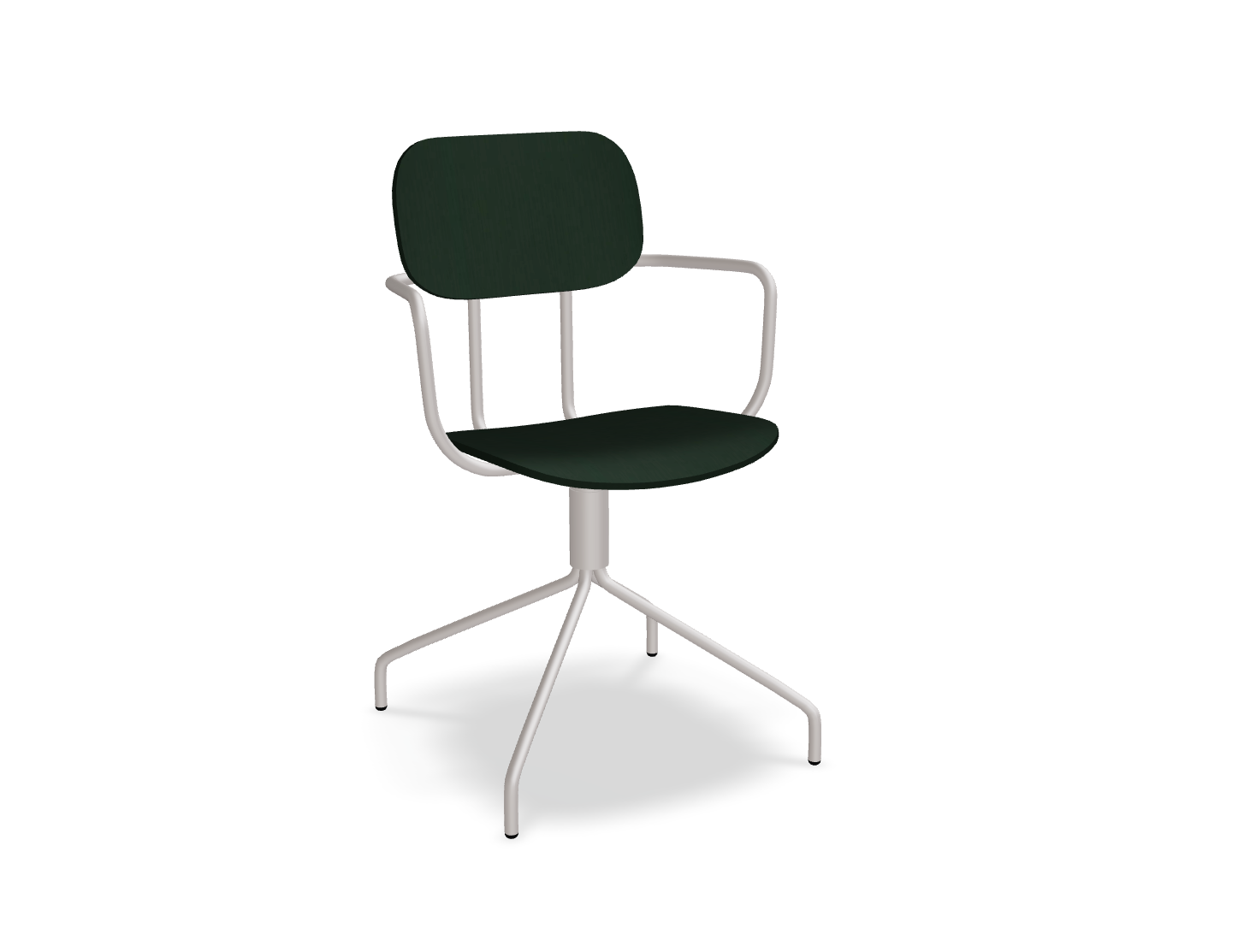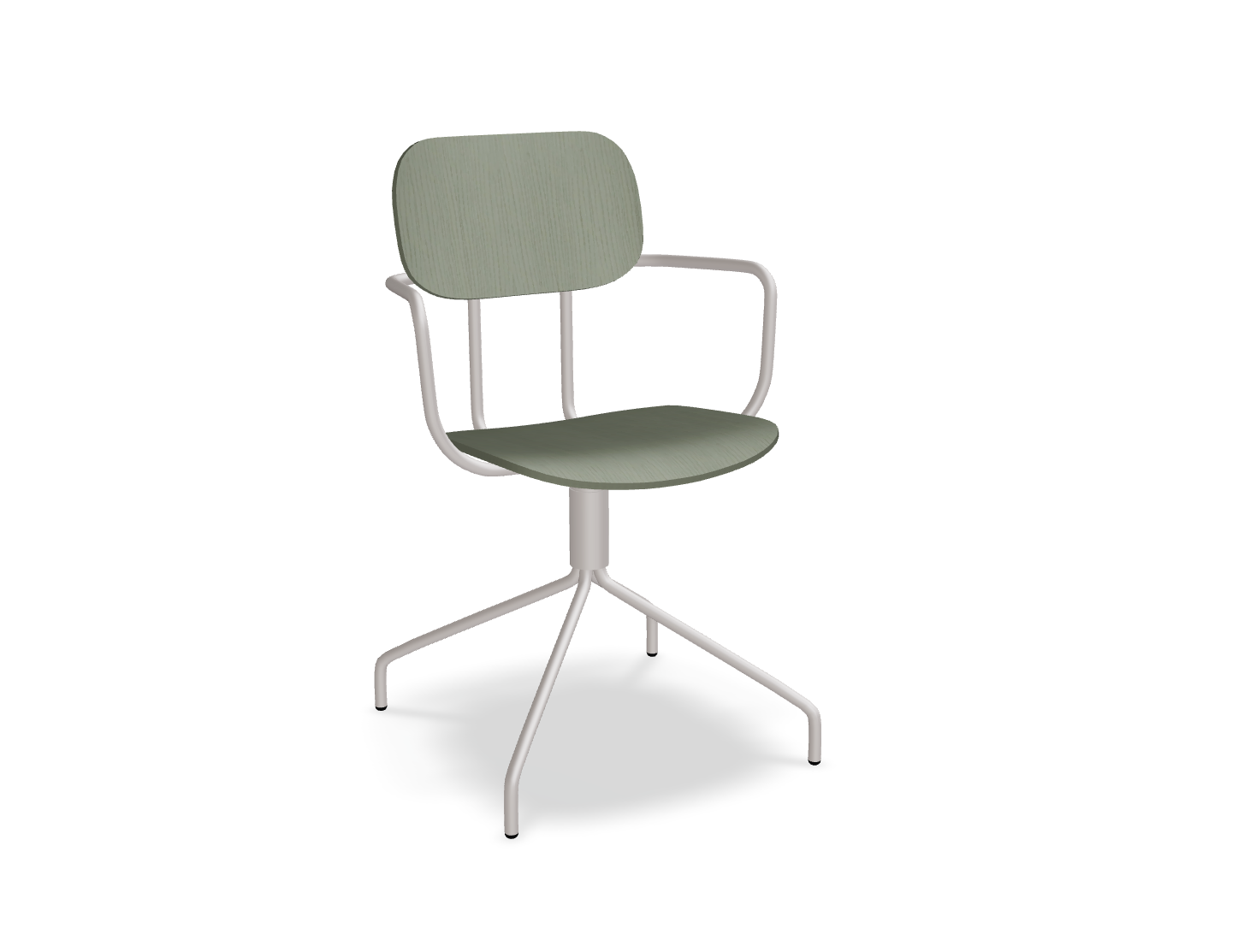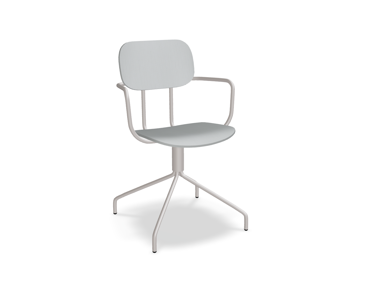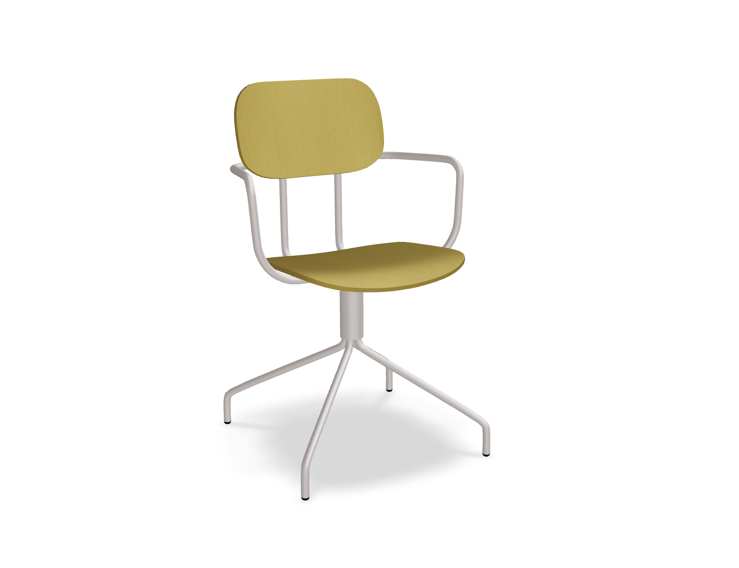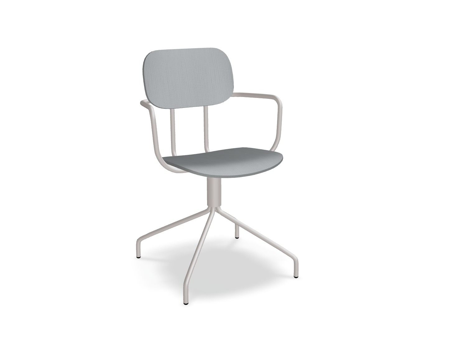 Swivel chair New School is a modern reinterpretation of the classic form of a school chair, offering a wide range of configurations adapted to various office spaces. In the plywood version and with a rotating base, it is a practical and stylish addition to any interior. The seat rotating 360 ° allows you to get up freely from the table and move within the workplace, and optional armrests further increase comfort.