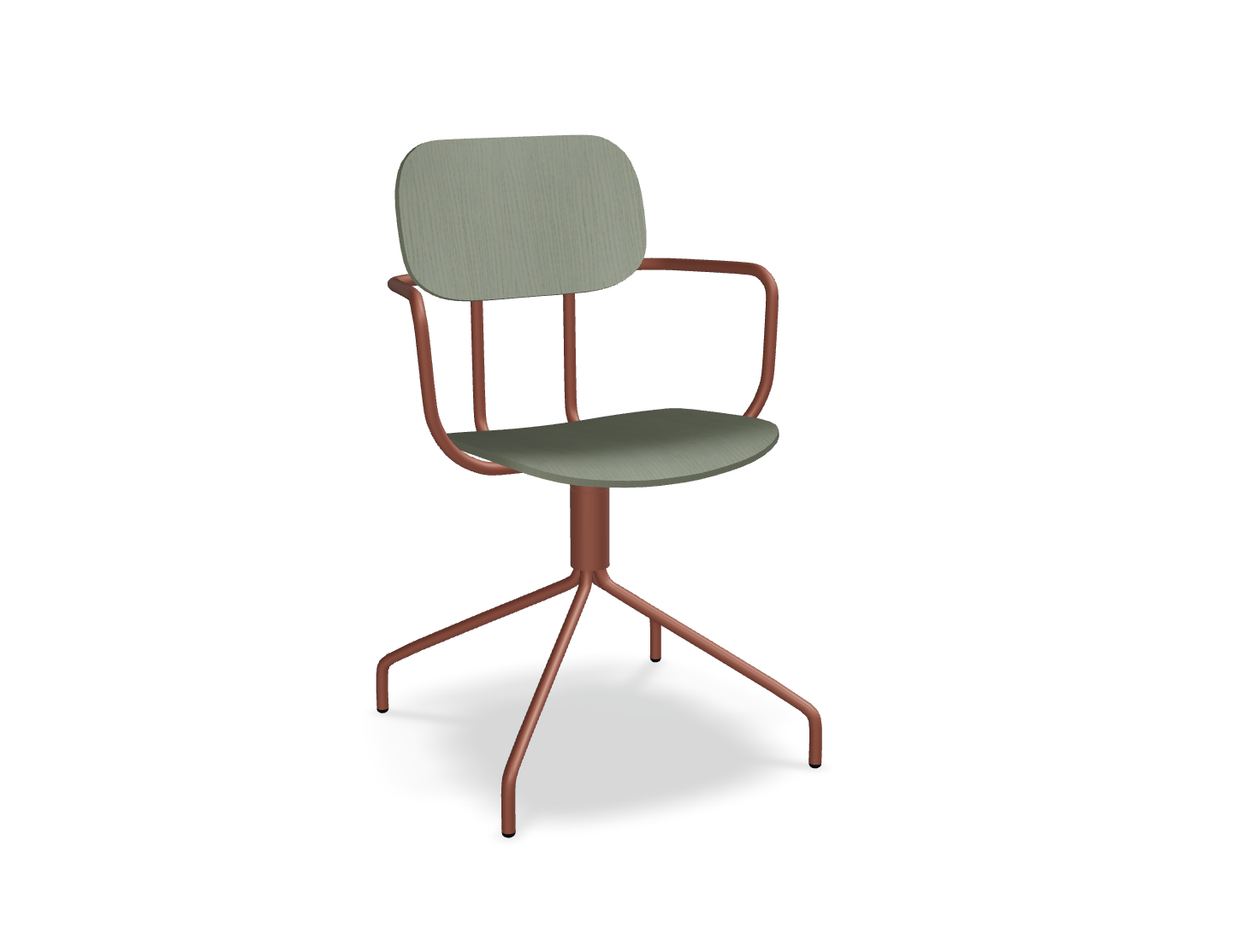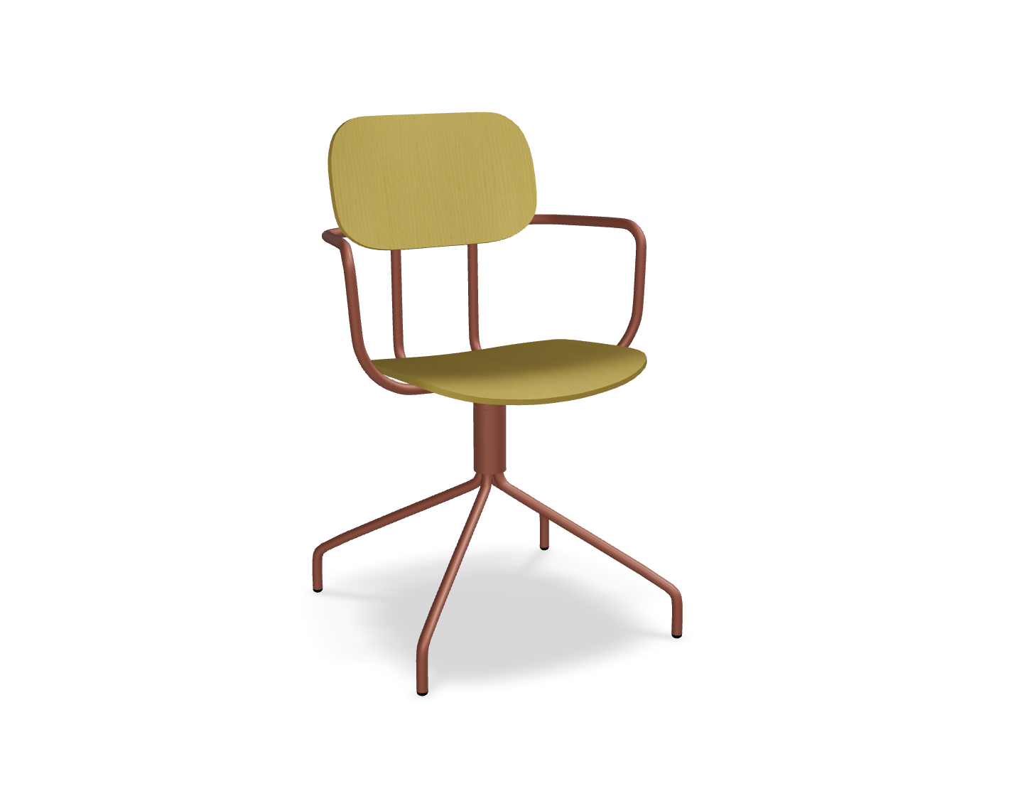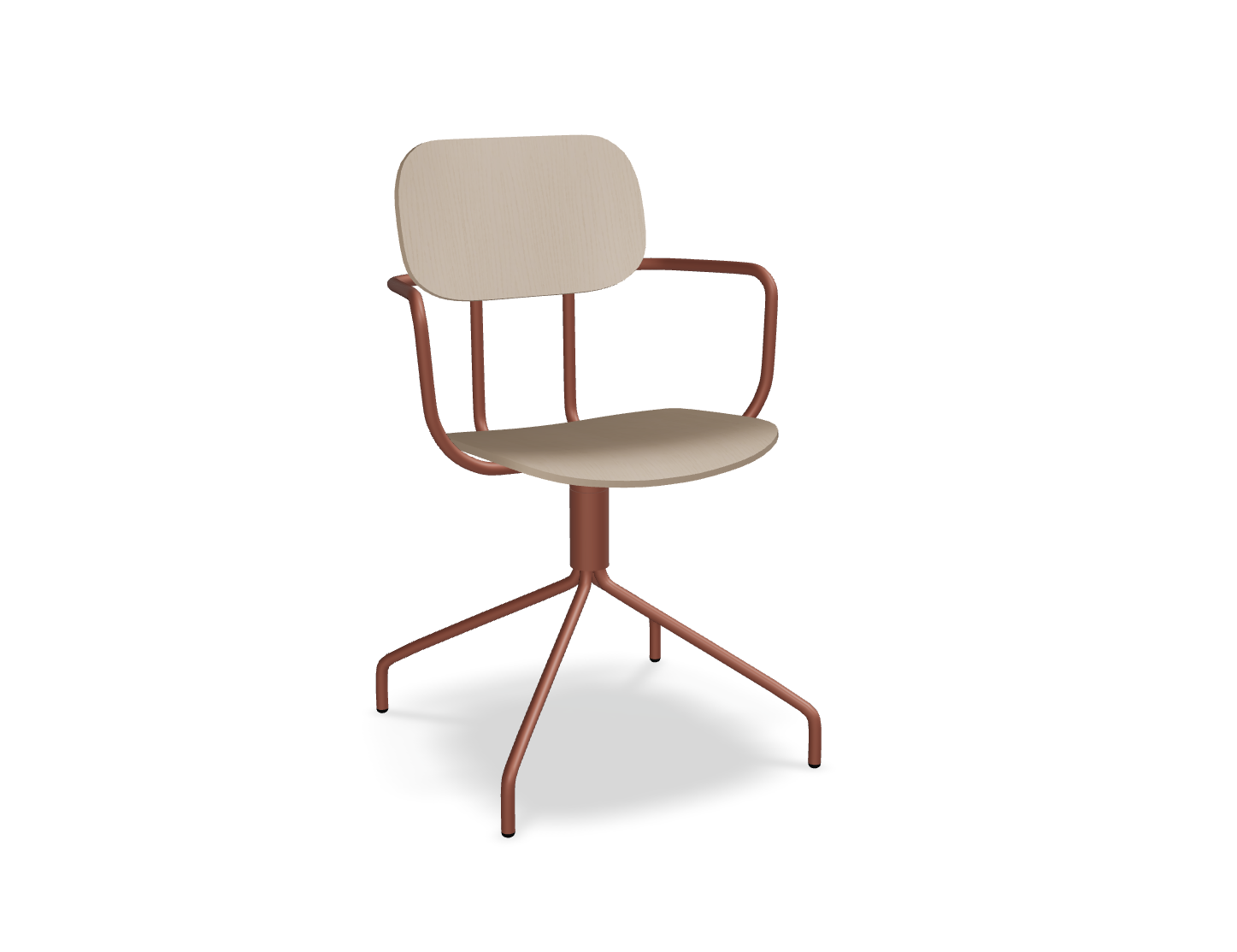 Swivel chair New School is a modern reinterpretation of the classic form of a school chair, offering a wide range of configurations adapted to various office spaces. In the plywood version and with a rotating base, it is a practical and stylish addition to any interior. The seat rotating 360 ° allows you to get up freely from the table and move within the workplace, and optional armrests further increase comfort.