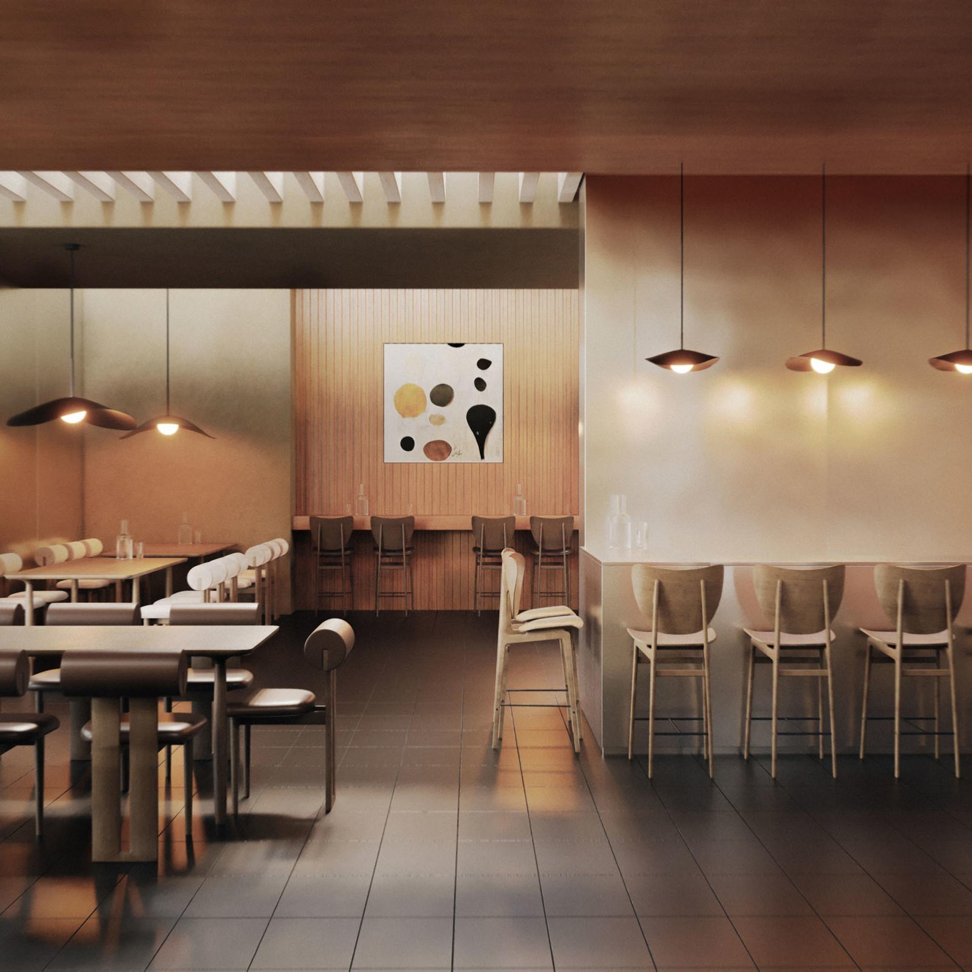 Table The eye is an interpretation of the Japanese word meaning the "ōku" oak. Countertop table The eye is made of oak veneer with rounded edges, which adds a sophisticated detail of a large surface. The legs from the sections of oak wood are placed sporadically to create the illusion of a floating countertop, while adding sculptural details to the table.