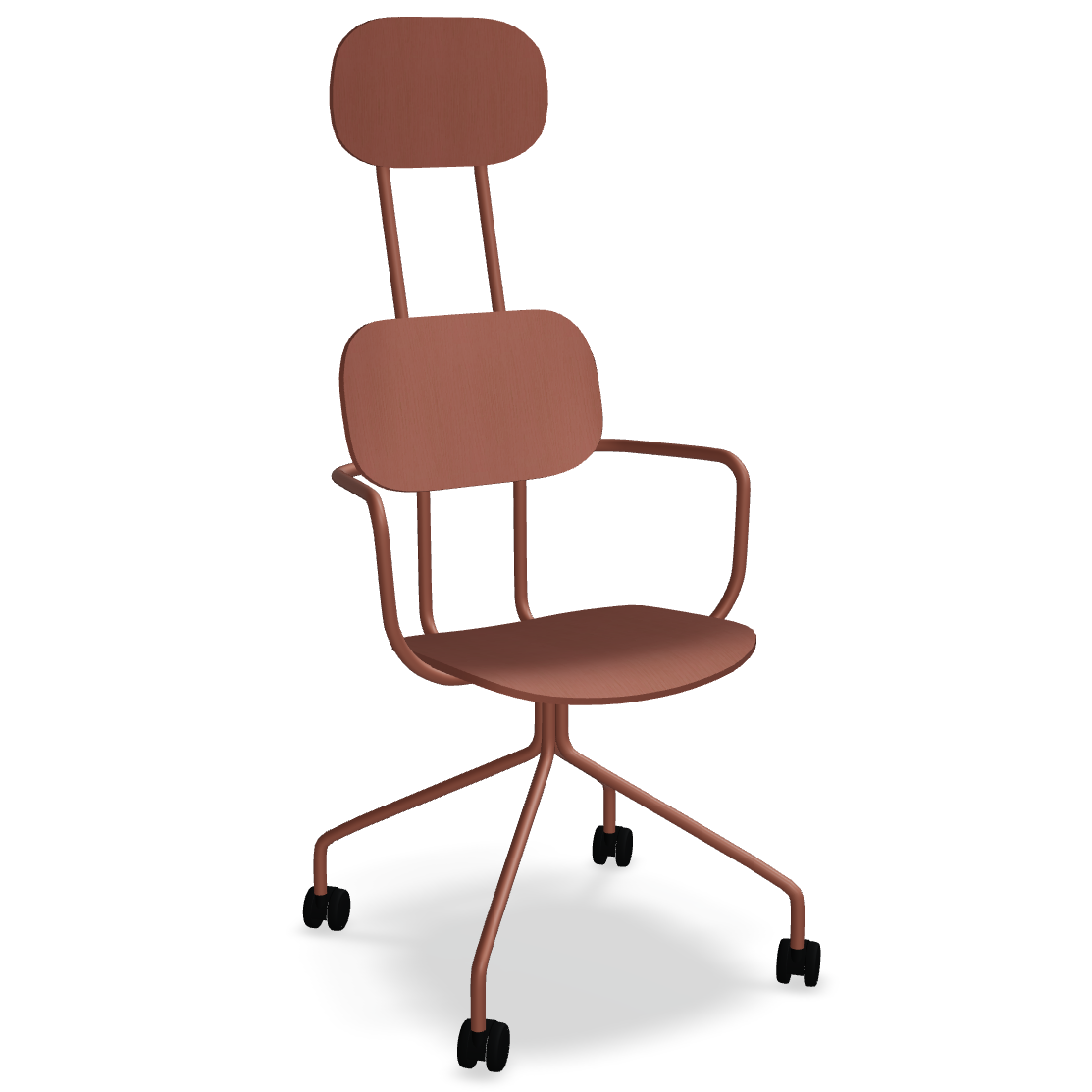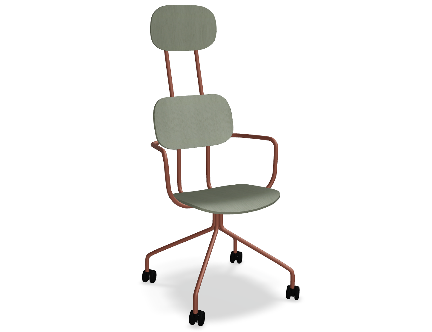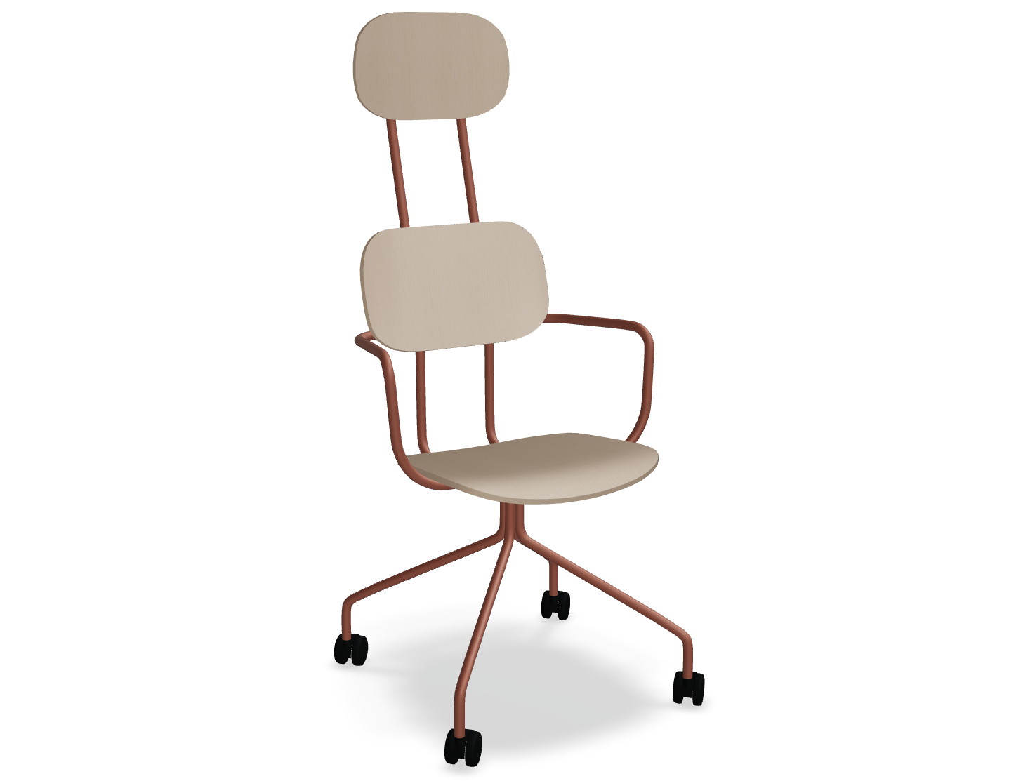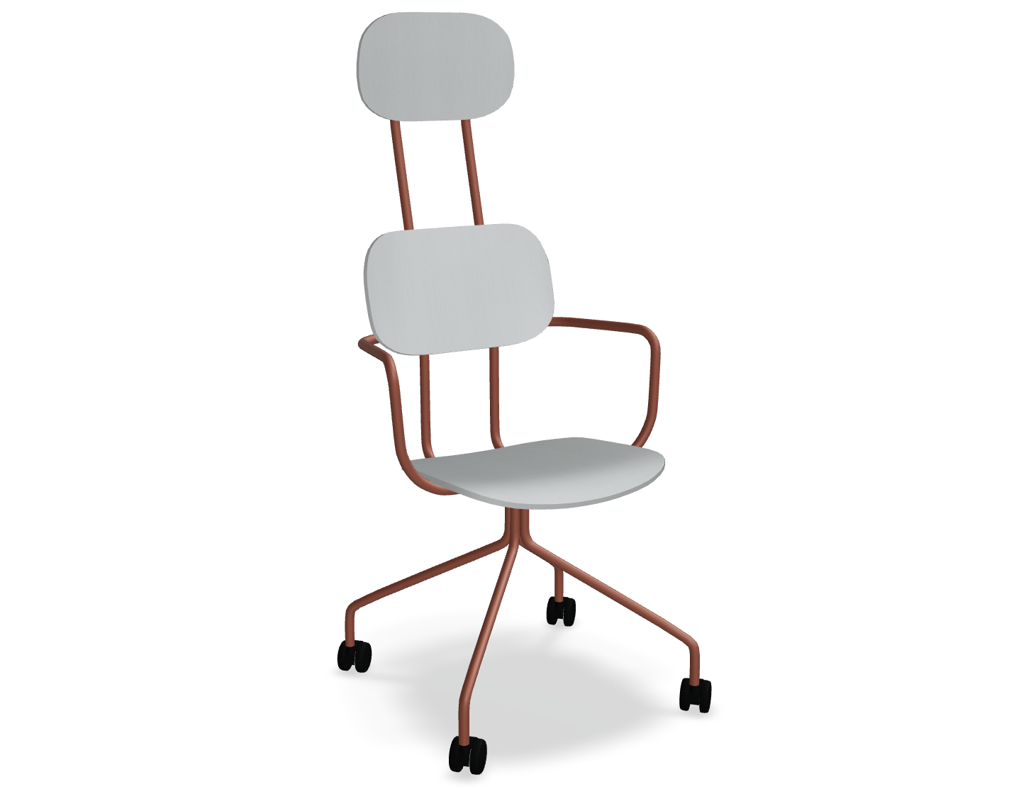 Office chair with headrest New School, designed by Studio Form US with Love, attracts attention with a modern form of double support. This version provides support for the whole back, and the headrest additionally increases the comfort of use. Thanks to the wheels and armrests, the New School chair is not only comfortable, but also functional, allowing for freedom of movement and a comfortable position, even during a longer sitting.
