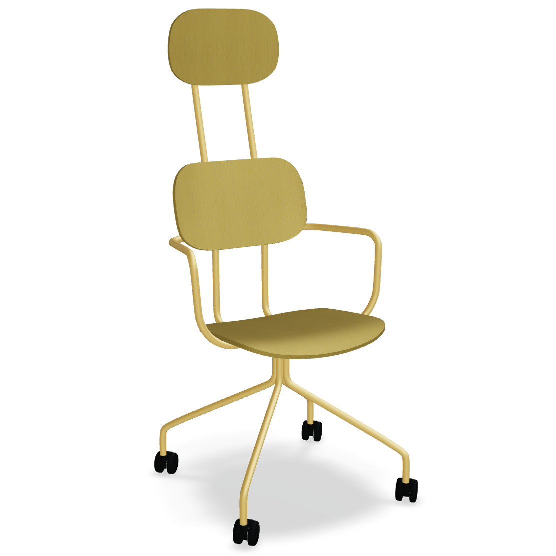 Office chair with headrest New School, designed by Studio Form US with Love, attracts attention with a modern form of double support. This version provides support for the whole back, and the headrest additionally increases the comfort of use. Thanks to the wheels and armrests, the New School chair is not only comfortable, but also functional, allowing for freedom of movement and a comfortable position, even during a longer sitting.
