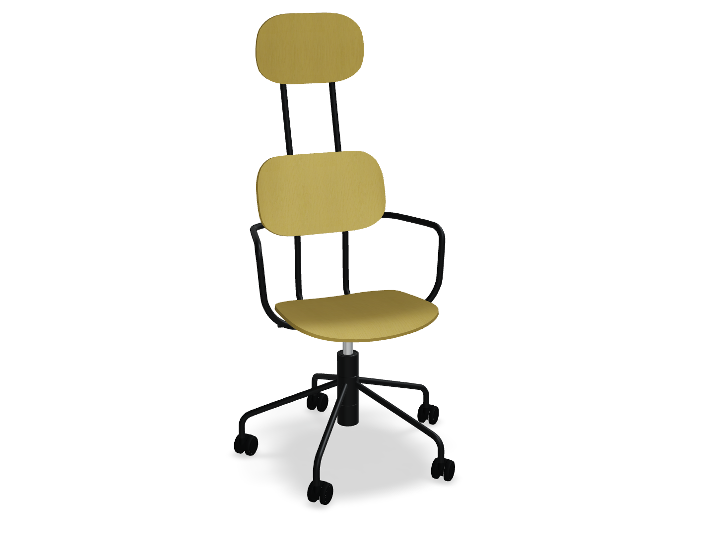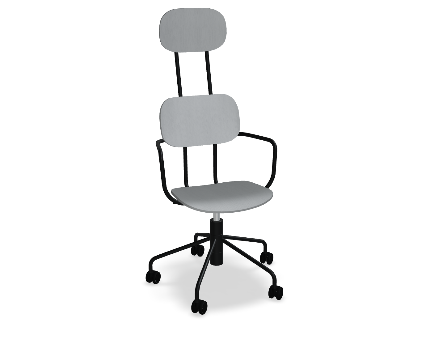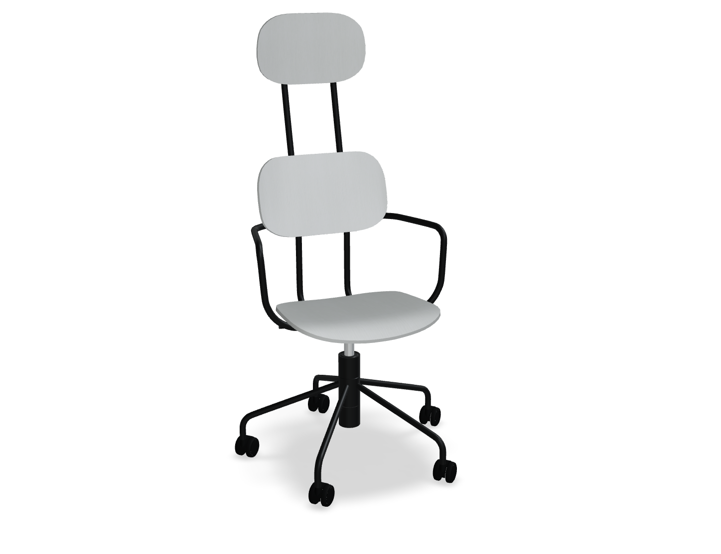 Office chair with headrest New school with adjustable height provides comfortable support for the user's whole back. Equipped with a cylinder and wheels, it enables full freedom of movement, which makes them an ideal choice for offices and educational facilities. A durable seat and plywood support are easy to care for, so they will work in places with intensive use.