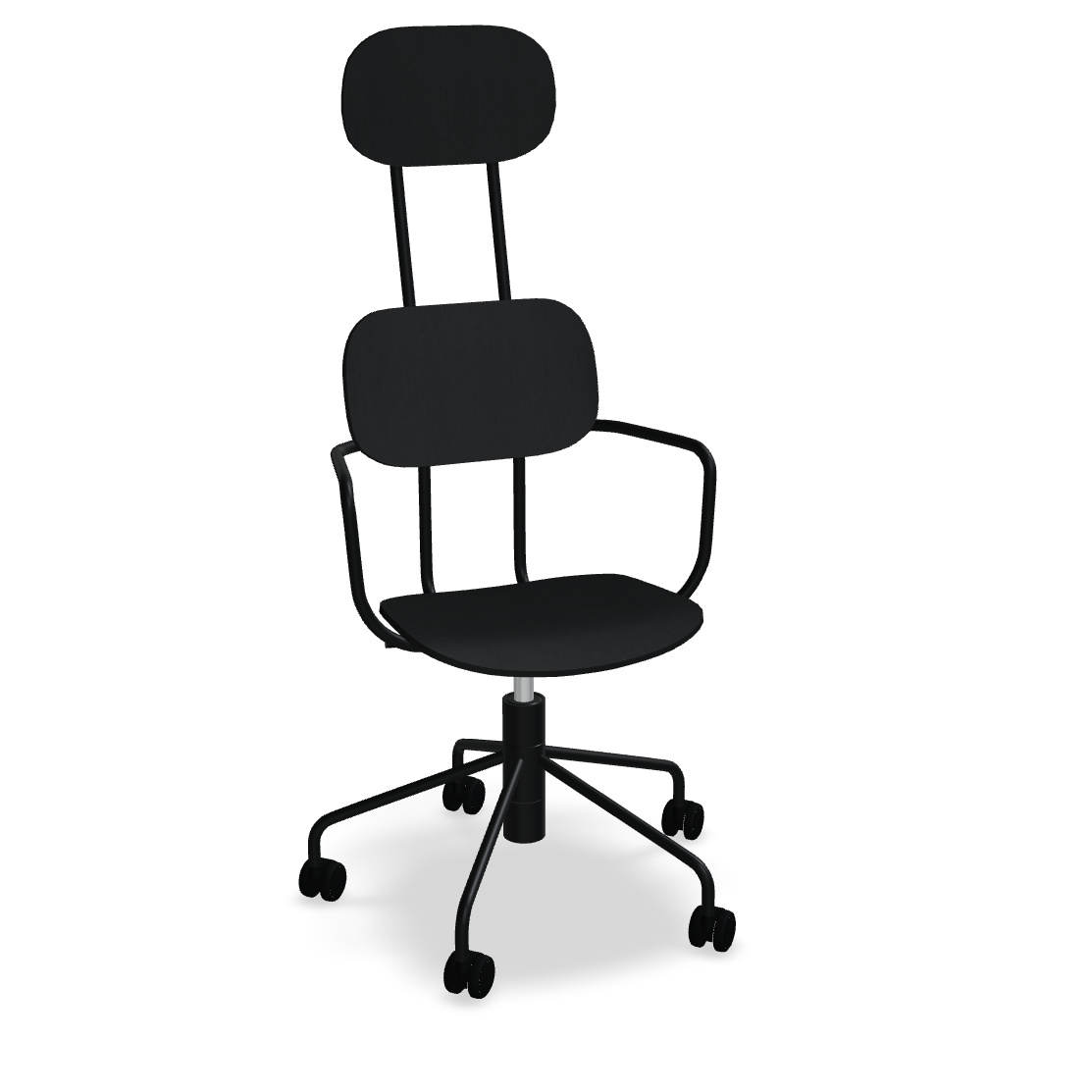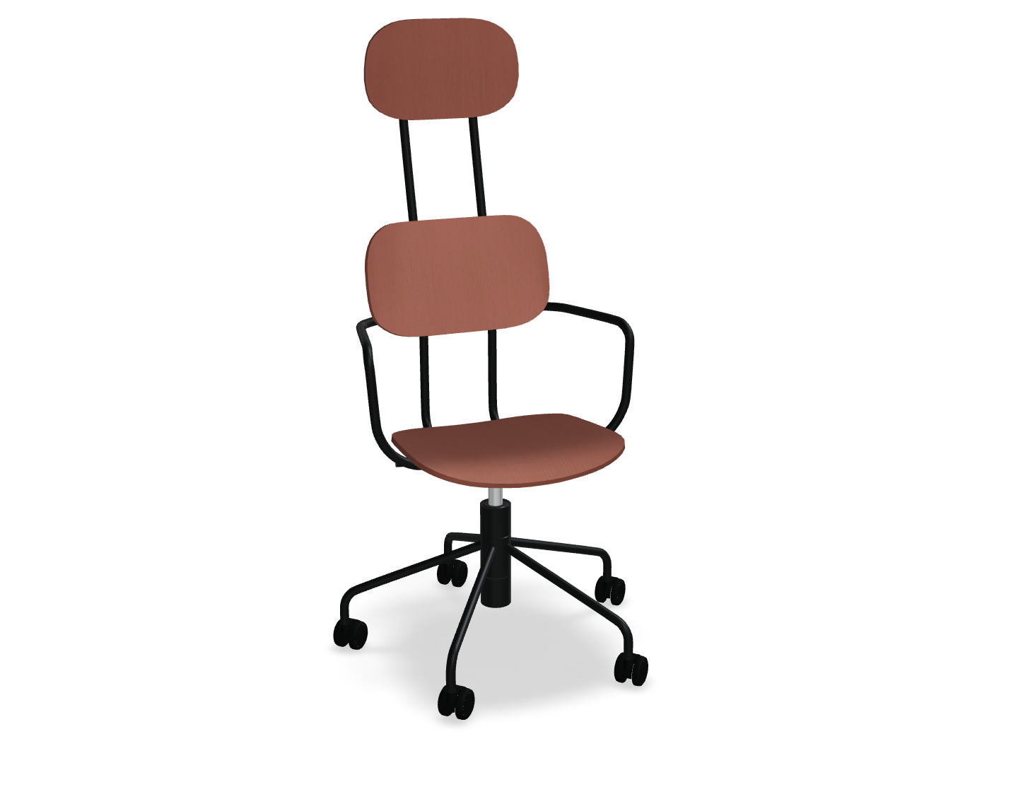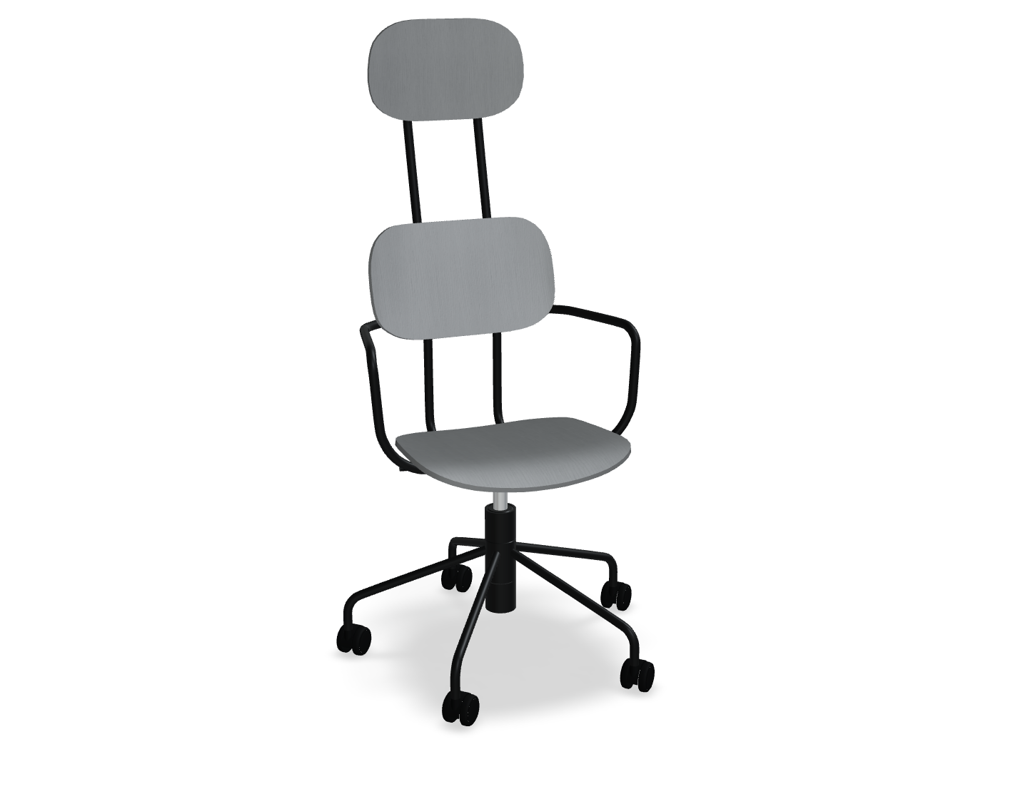 Office chair with headrest New school with adjustable height provides comfortable support for the user's whole back. Equipped with a cylinder and wheels, it enables full freedom of movement, which makes them an ideal choice for offices and educational facilities. A durable seat and plywood support are easy to care for, so they will work in places with intensive use.