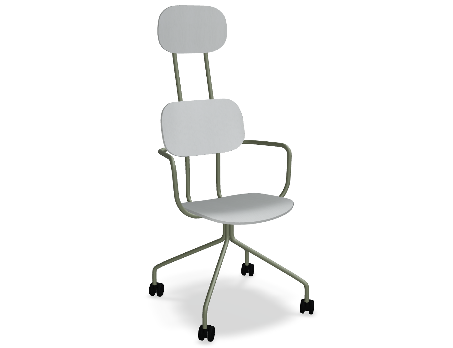 Office chair with headrest New School, designed by Studio Form US with Love, attracts attention with a modern form of double support. This version provides support for the whole back, and the headrest additionally increases the comfort of use. Thanks to the wheels and armrests, the New School chair is not only comfortable, but also functional, allowing for freedom of movement and a comfortable position, even during a longer sitting.