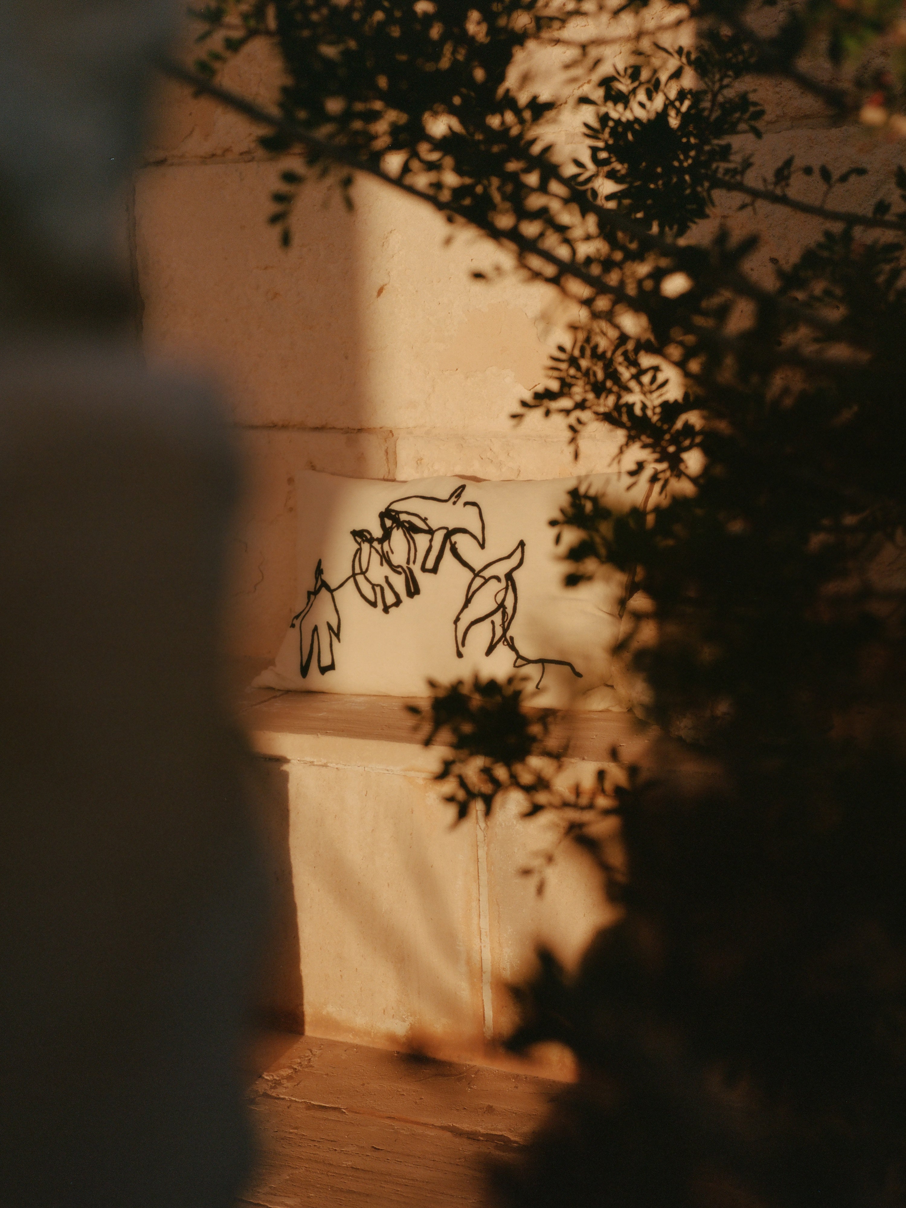 The Vuelo cushion is a tribute to the artistic sensitivity of Jørn Utzon, the creator of the iconic Can Lis house. The embroidered motif, inspired by the sketches of birds that Utzon created in Mallorca, brings an atmosphere of freedom, movement, and closeness to nature into the interior. The name "Vuelo" – from Spanish meaning "flight" – perfectly captures the ephemeral character of the pattern and the spirit of spatial lightness.