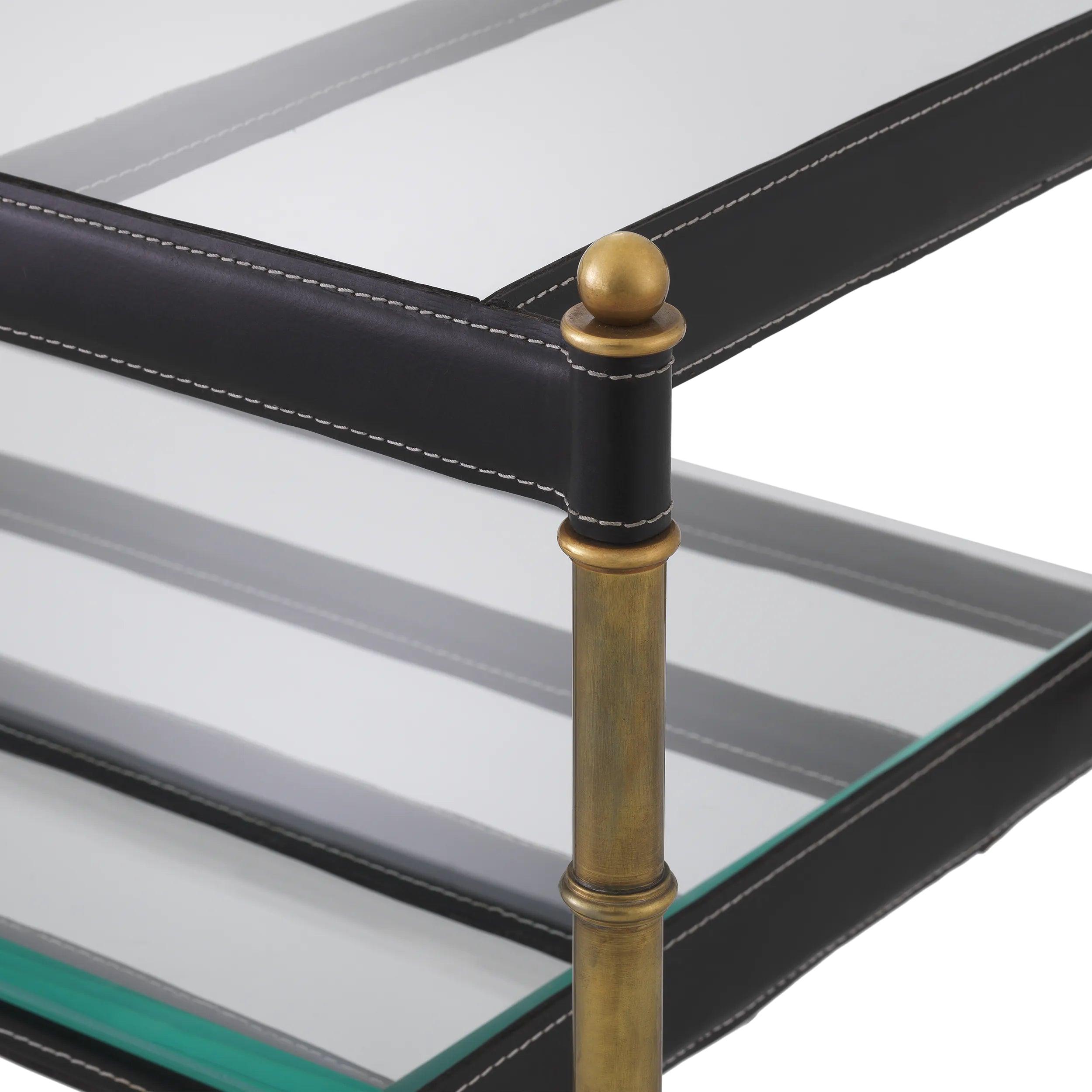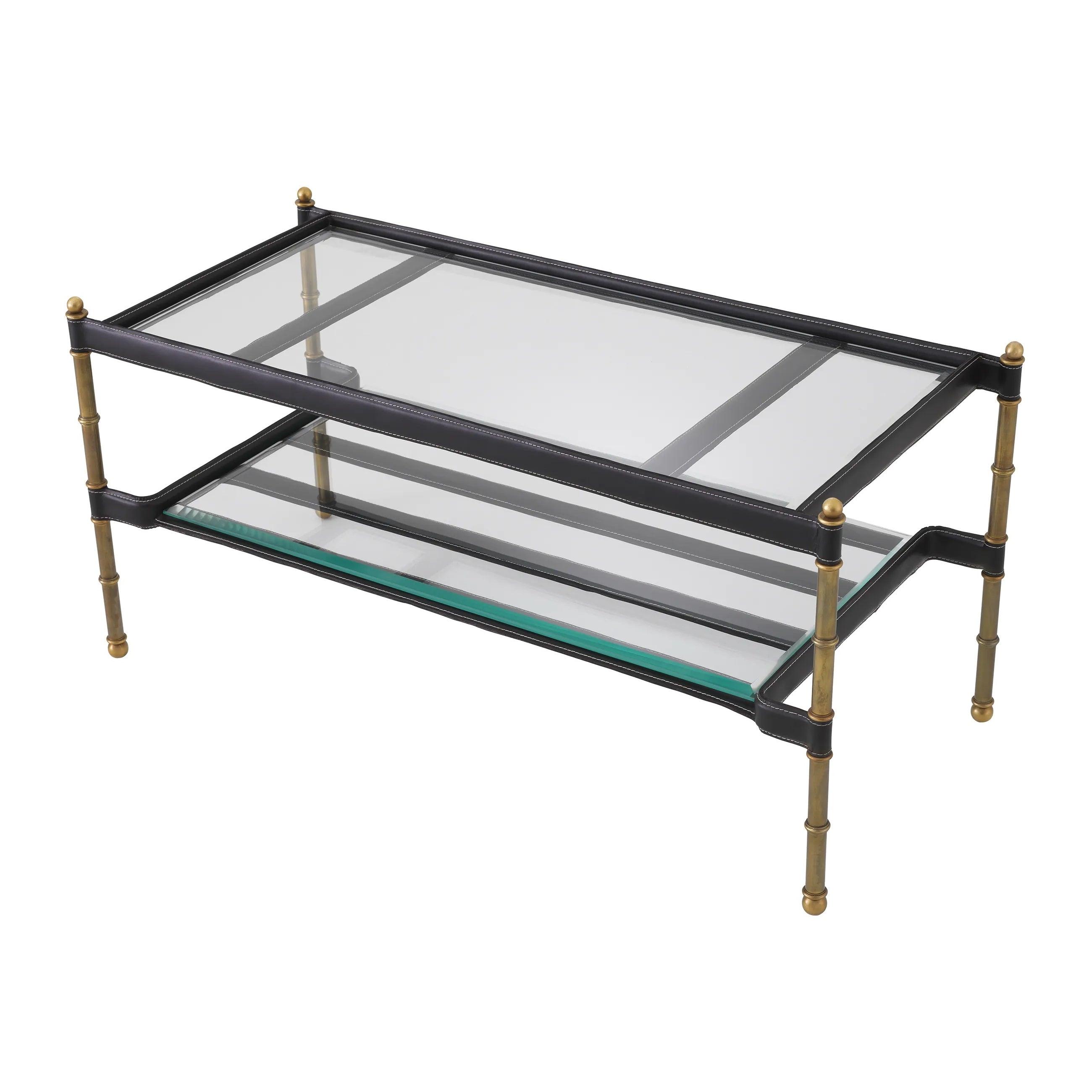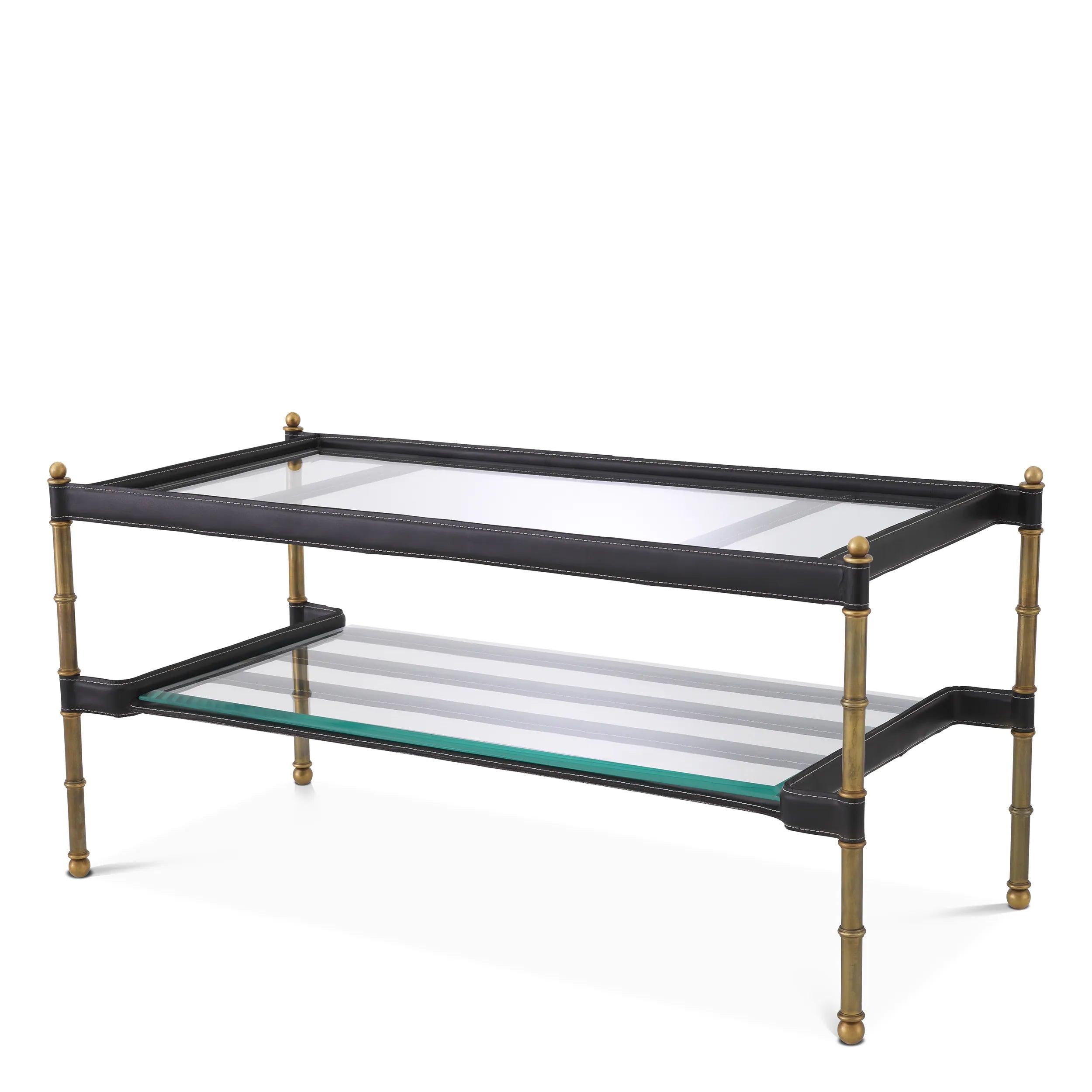 First of all, its delicate design is striking. Four slender legs, finished with sophisticated vintage brass coloring, not only stabilize table, but they also give him character. Two levels from a phased, transparent glass make the table seem light and spacious, perfectly fitting into any interior, regardless of its size.