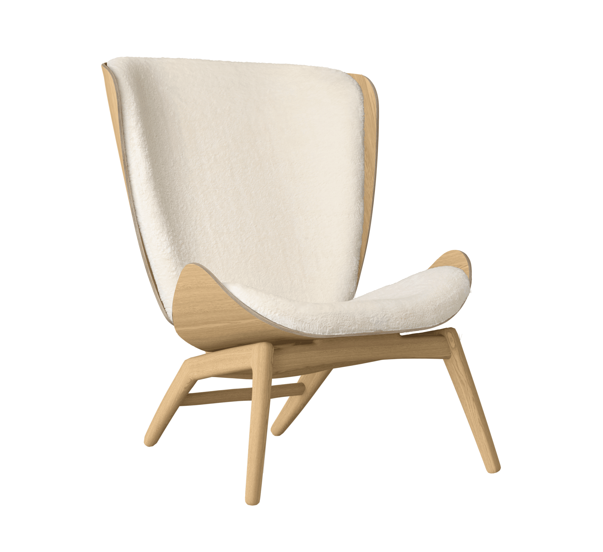 Fotel READER kremowy plusz z dębową podstawą UMAGE    Eye on Design