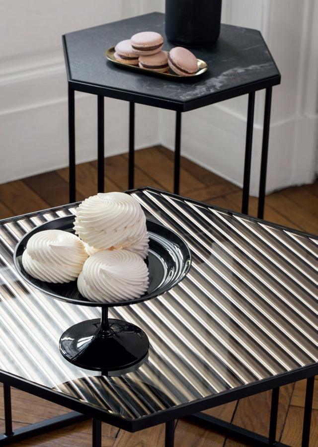 Renee offers a diverse collection coffee tables And side with different geometric shapes, sizes and heights. Choose between hexagonal and square tops, available in stunning mirror glass with eye -catching waves or elegant ceramic finishes.