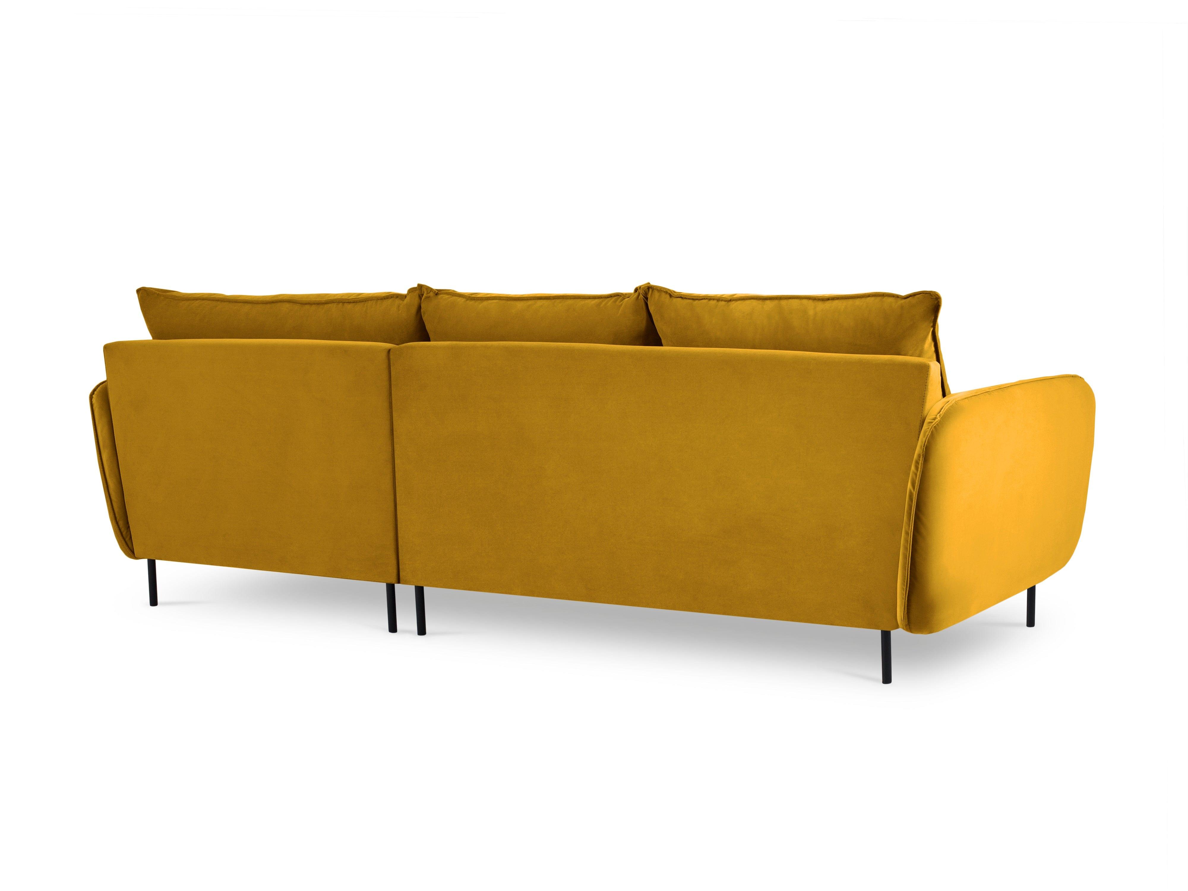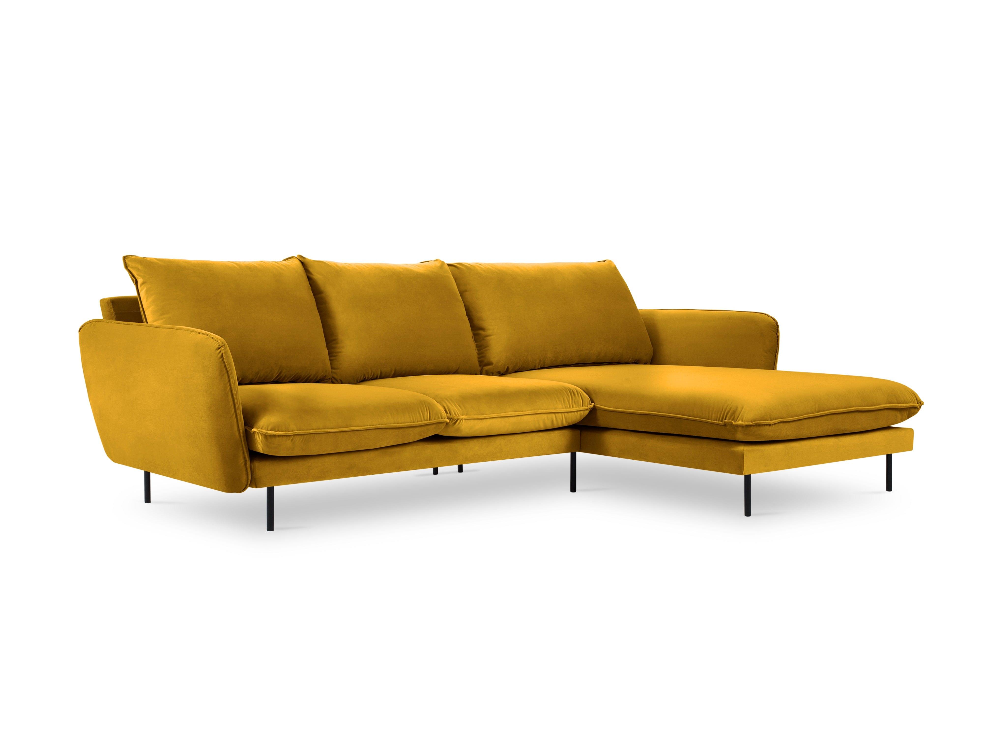 Narożnik aksamitny prawostronny VIENNA żółty z czarną podstawą Cosmopolitan Design    Eye on Design