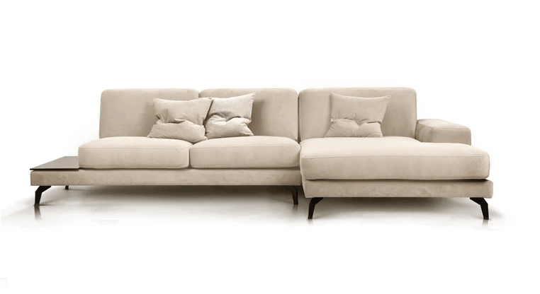 Right -sided corner velvety light beige with a black shelf